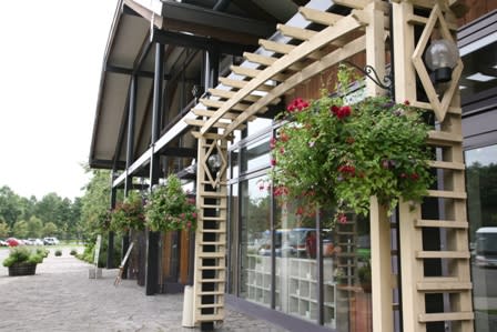 レストラン前ではハンギングバスケトが大きく育っていました。