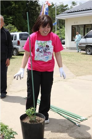 写真は1カ月前に陸前高田の避難所で野菜を植えるイベントの様子。