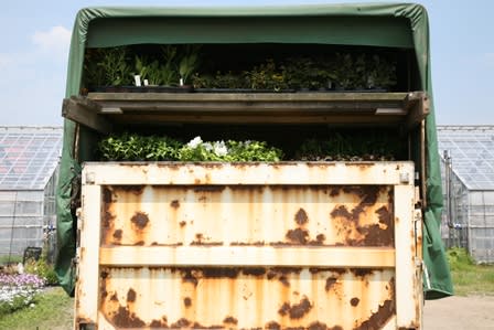 今年も行われる層雲峡温泉花ものがたりの花材を層雲峡軍団が早朝からピックアップに来ました。