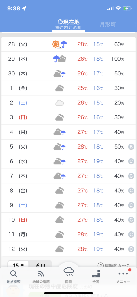 昨日までの予報では明日から三日間雨予報でしたが、、だんだんずれてきましたね。