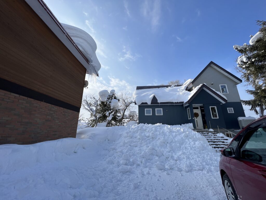 手前のゴロゴロしか感じの雪は屋根からの落雪です。