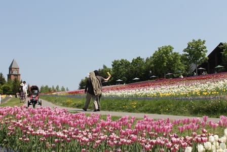 滝野のチューリップはこの暑さであっという間に見頃を過ぎてしまいましたが、それでも結構にぎわっていました。