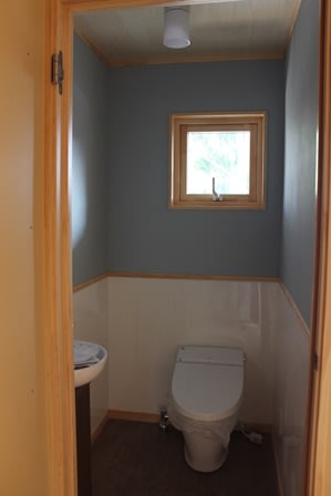 手洗いの台の色が「あれ?^_^;」という感じになりましたので、これは壁紙を貼ってカバーしようかと。