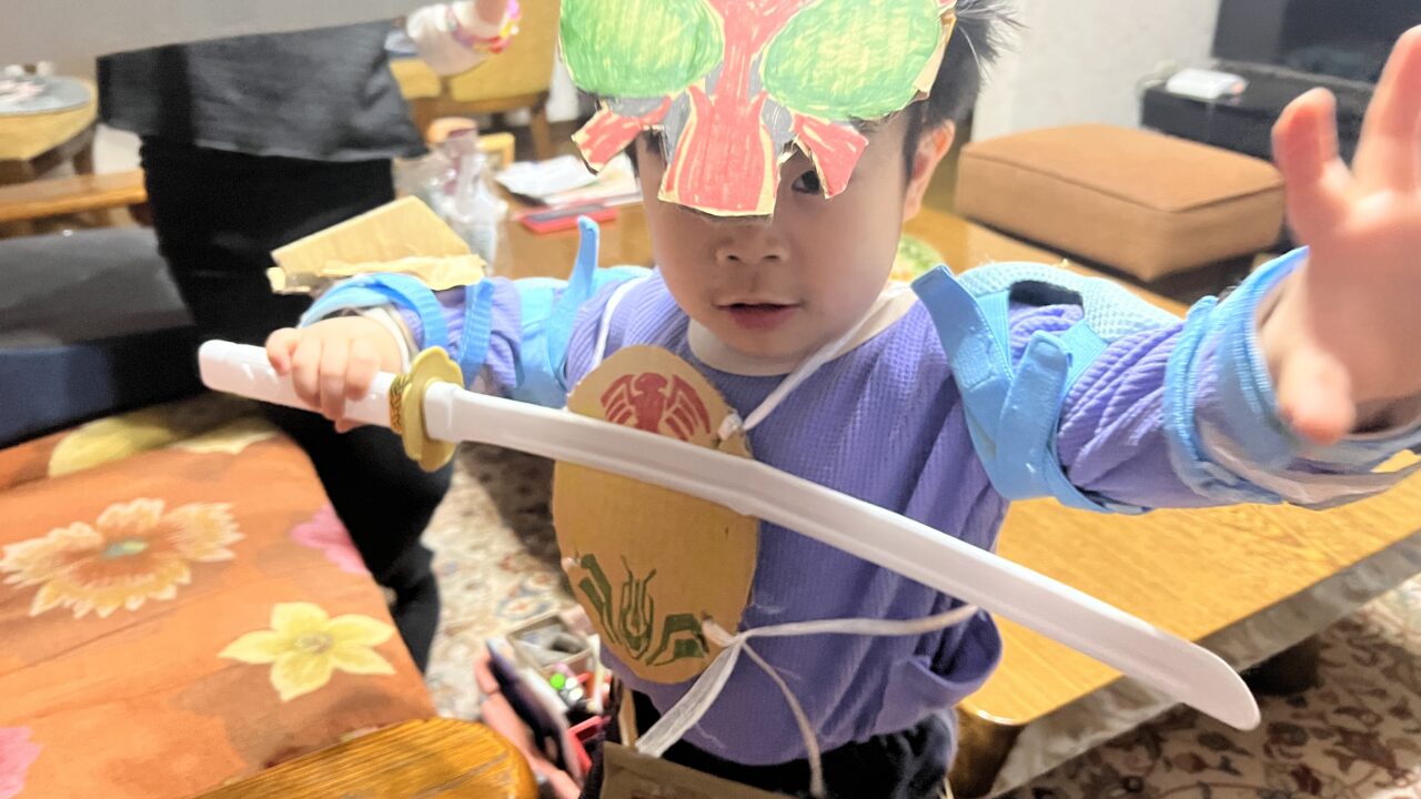 いつの間にか孫2が戦隊ものから仮面ライダーに気持ちが移って、戦いごっごがマイブーム(笑