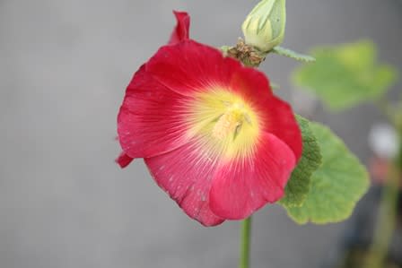 9㎝ポットで咲いている苗のホリホック。