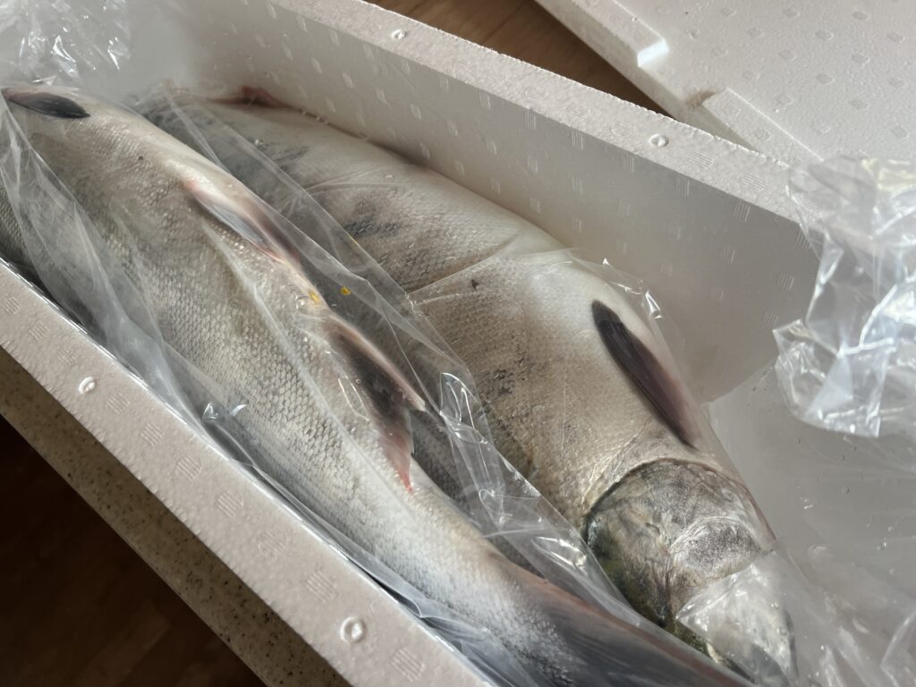 魚屋で朝上がった鮭を手にれることができるというのは、産地ならではですね、いいなぁ(魚屋にある漁師がとるのは沖合の鮭です)
