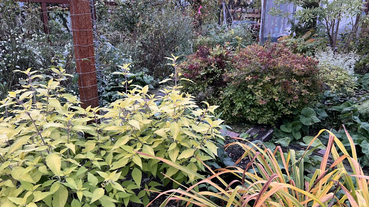 こちらのパイナップルセージは越冬したものです。蕾が上がってきていますが、、真っ赤な花を咲かせるのが先か、がっつり寒さがきて萎れてしまうのが先か。