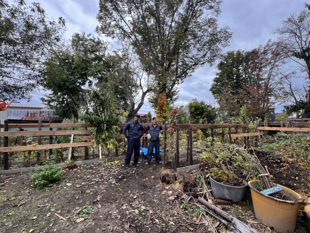 先日、終了できなかった生垣の支柱を完成させてくれました。