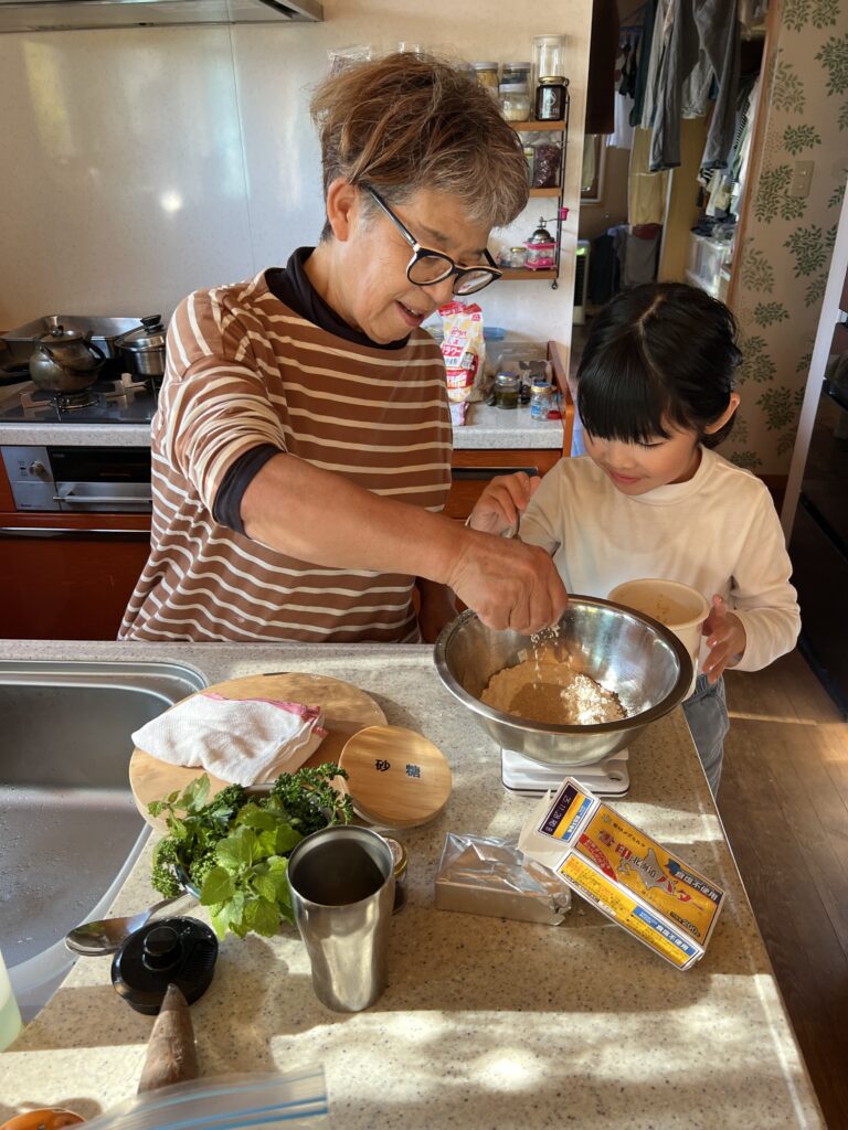 孫1と約束のケーキ作り。