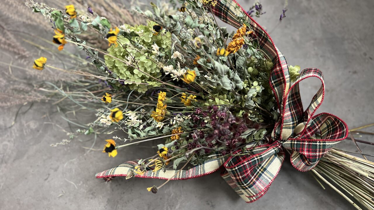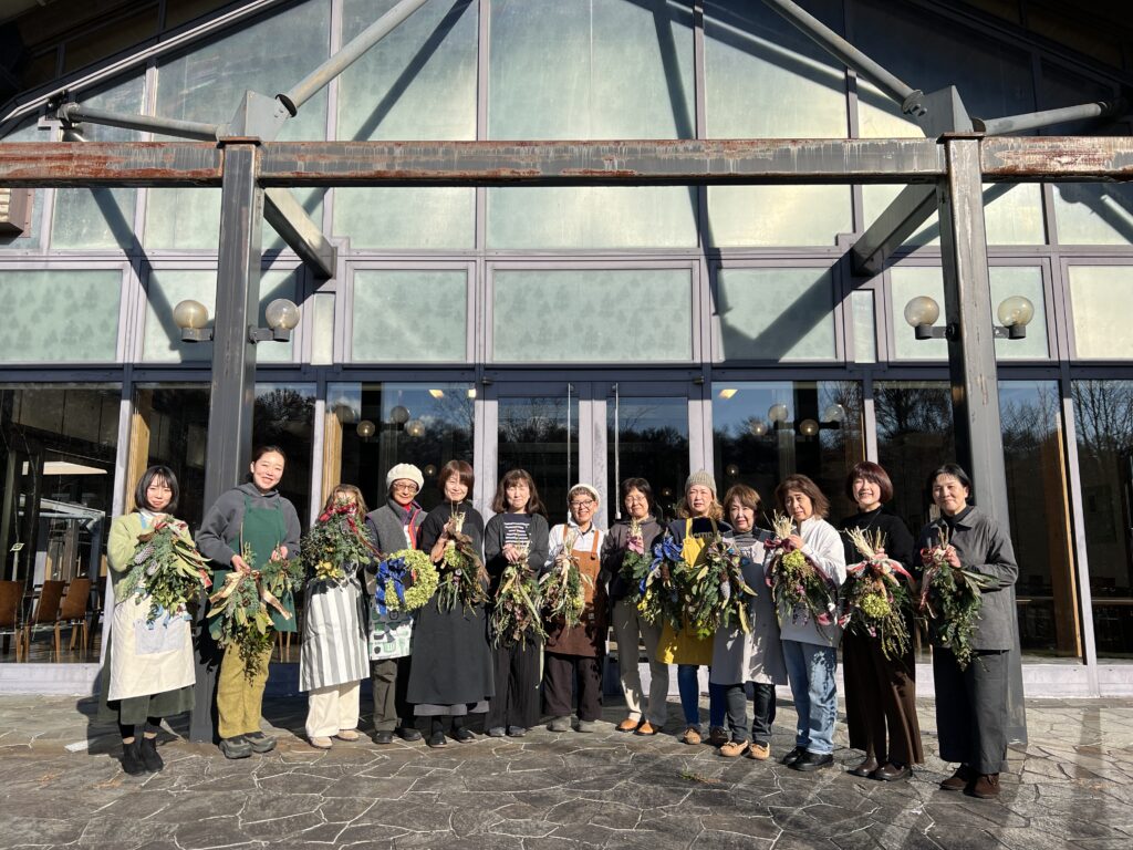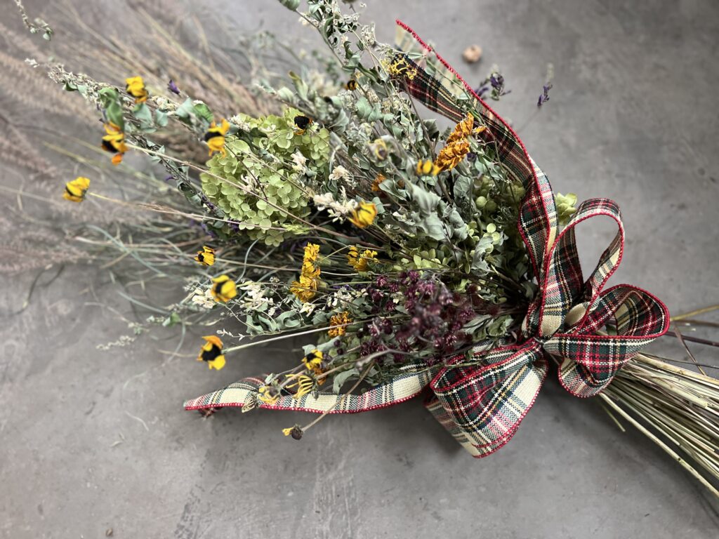 近年はアナベルも一般的になり、他の教室で行っていたエバーグリーンリース教室が人気となり、さら気軽に作れるスワッグ、ガーデンで採取した植物ドライのスワッグ作りへと、、、。
