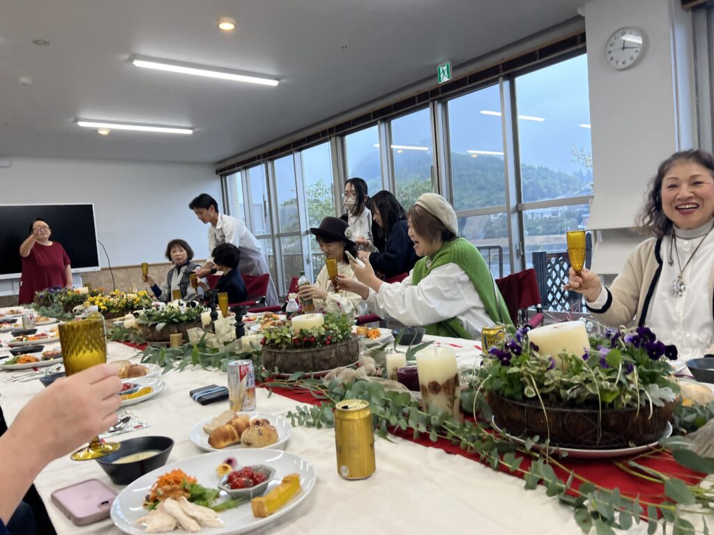 予定ではガーデンパーティをということでしたが、急遽会議室での開催。