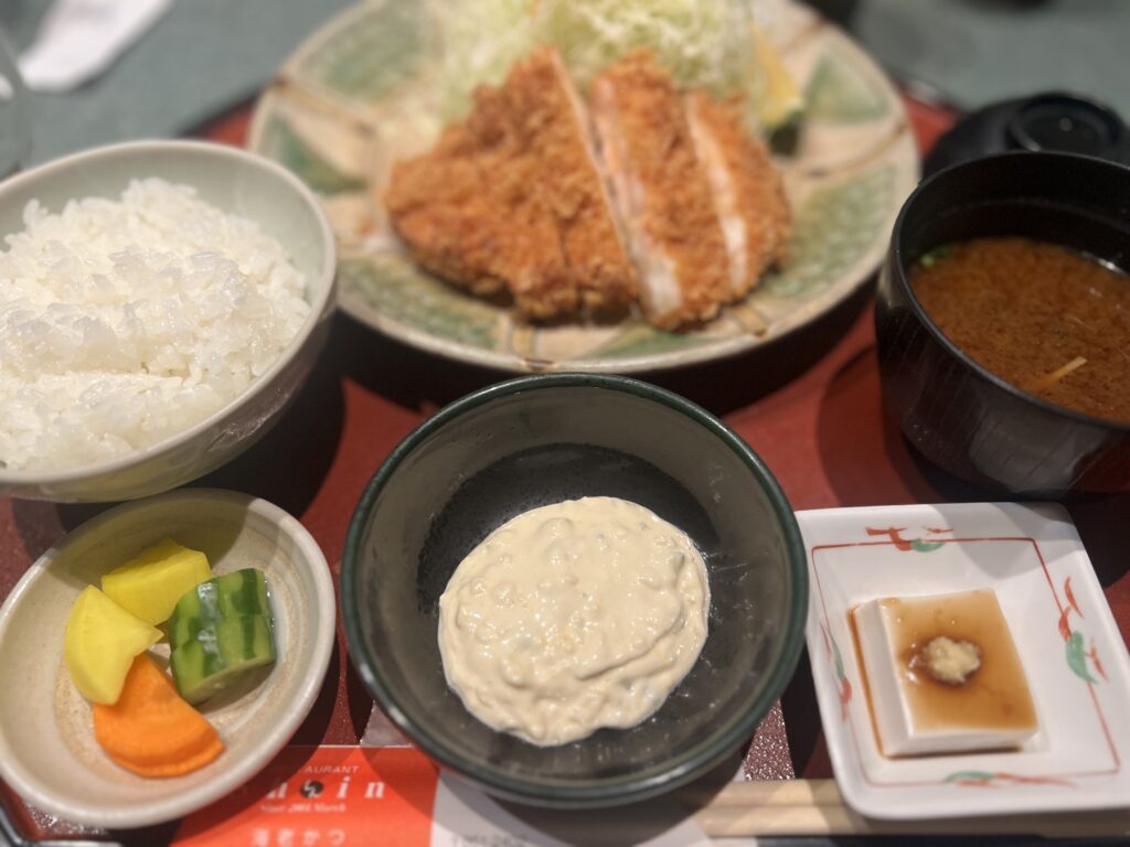 ここで三浦さんとは分かれ、宿までの道中での晩御飯は、レストランシンの「海老カツ」