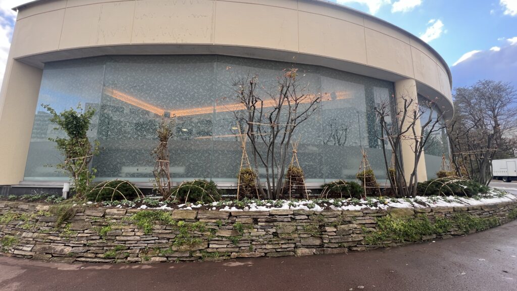 今週で今季の作業が終わりましたので、2時間の待ち時間に管理してくれている二人のガーデナーと朝モスで軽く打ち上げ。