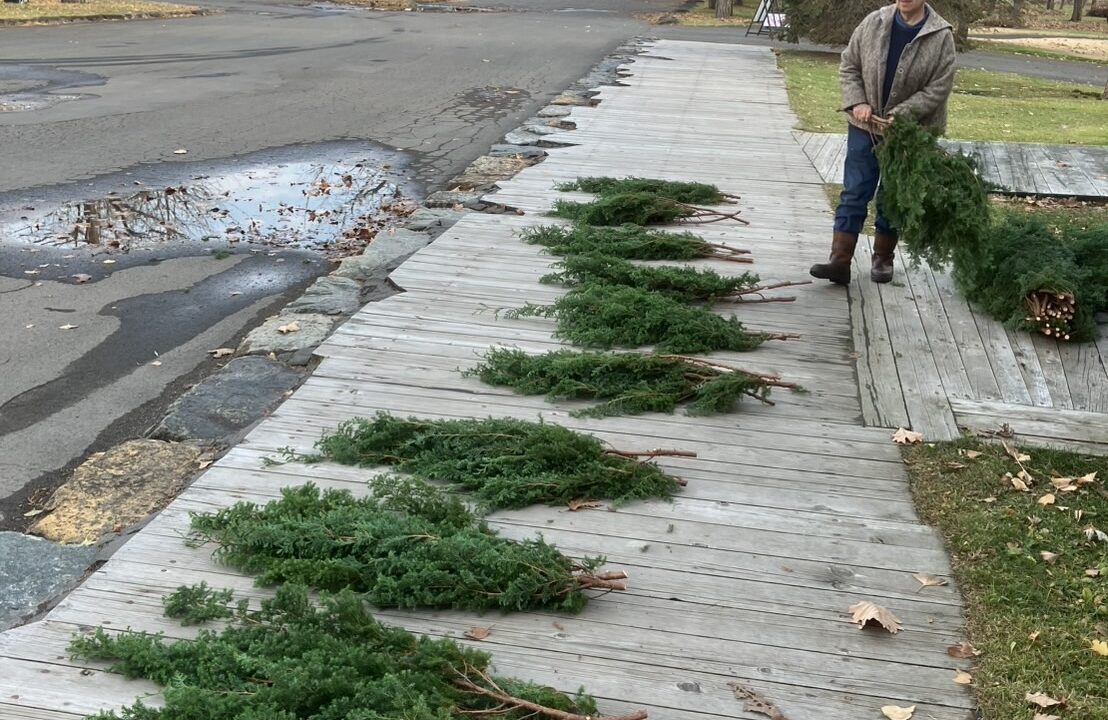 今日は残っていたガーデン作業と、リース&スワッグ教室の準備でした。
