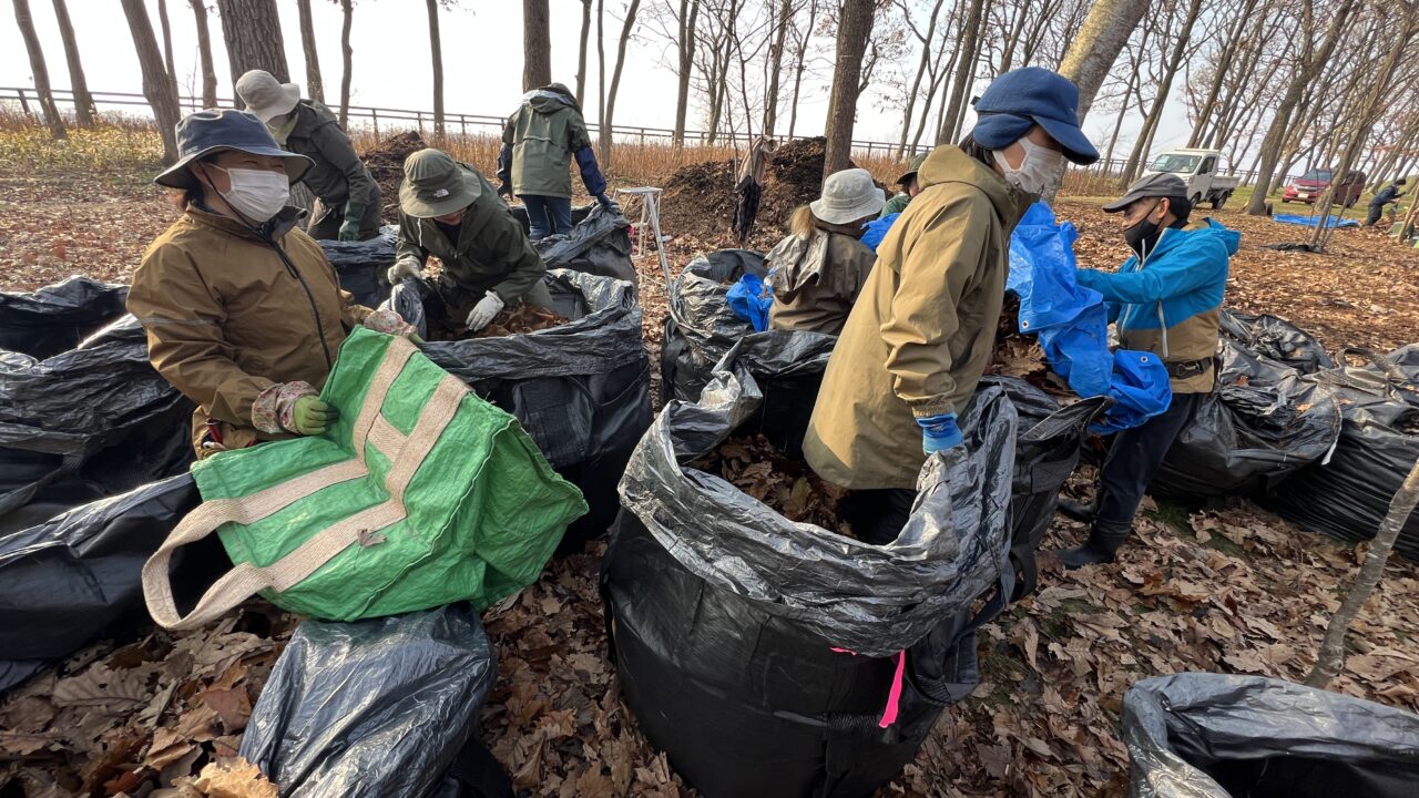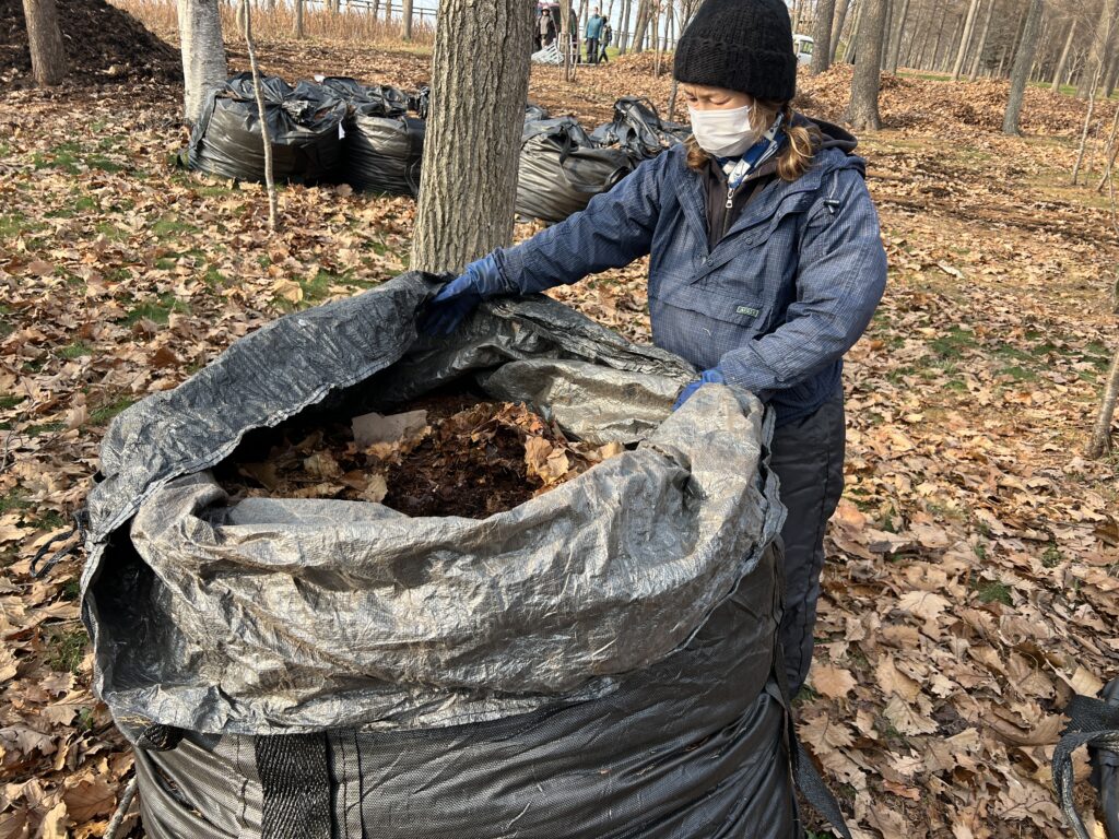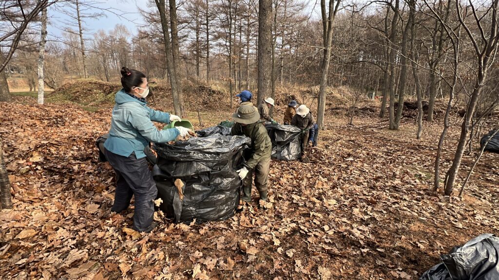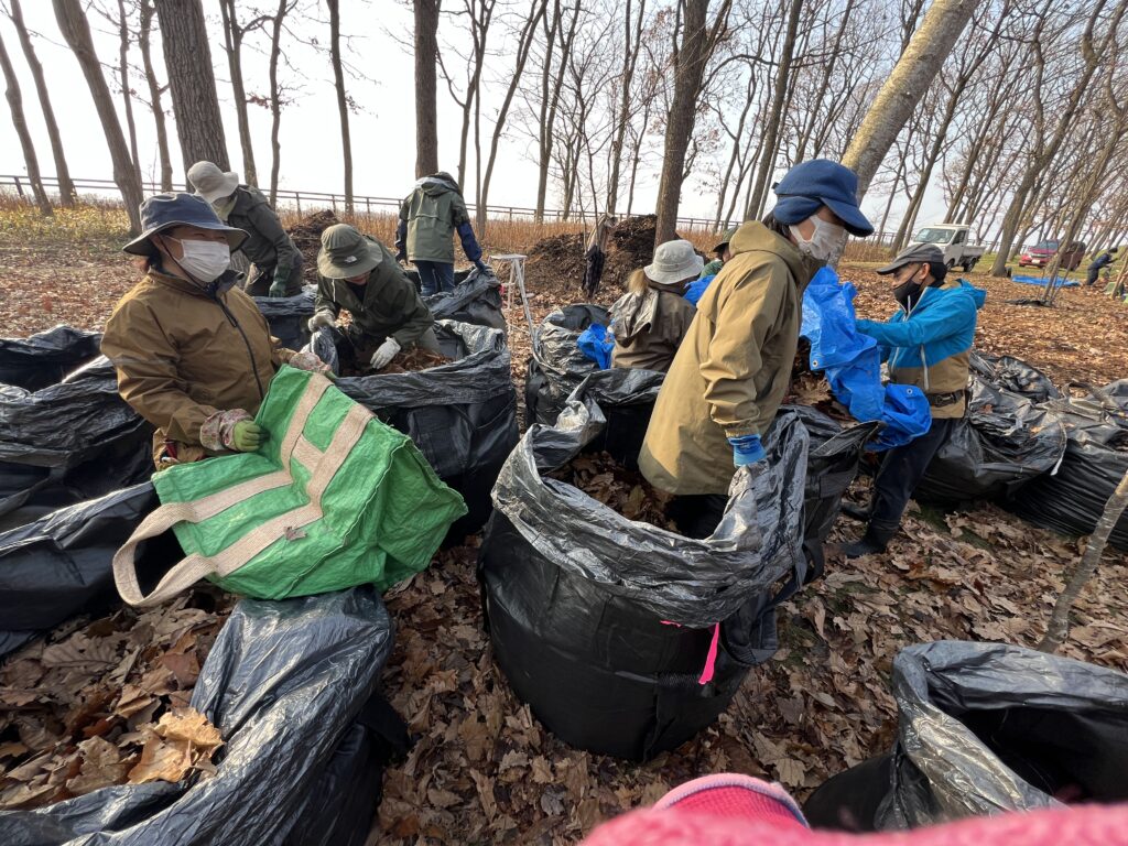 今日は豊富にあるお宝の落ち葉詰めでした。