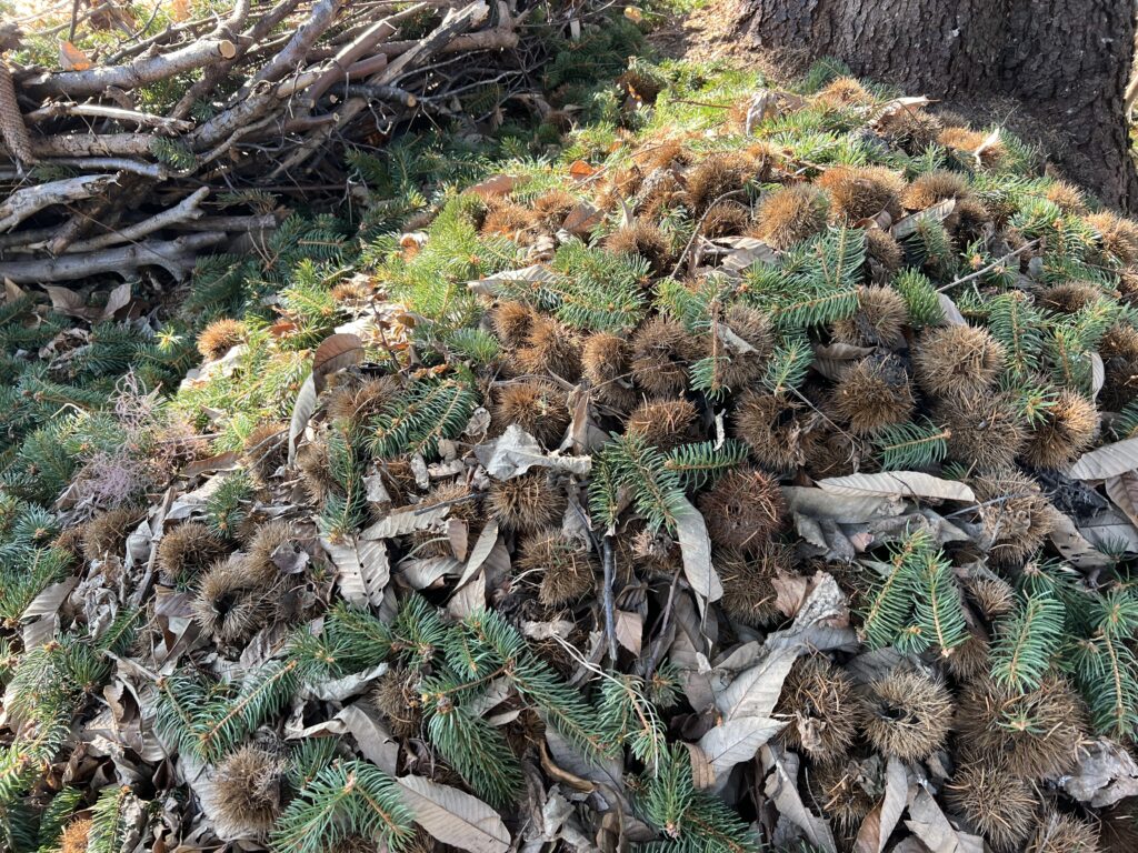 栗のイガを置いてあるあたりですが。
