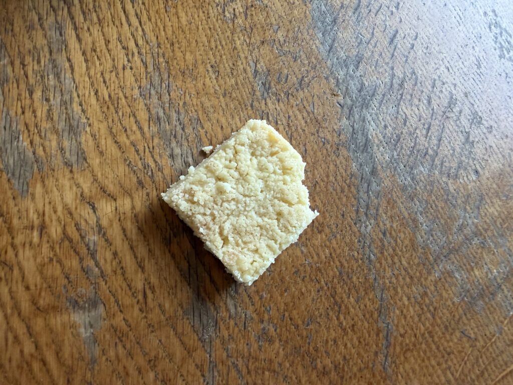 おやつは失敗のショートブレッド。バターとヘッドをレシピ通り入れたけど、私んは多いわ。だから1日1枚。