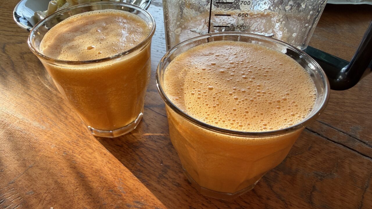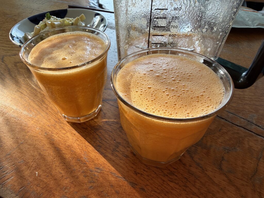 Sが送ってくれた山のみかんをミキサーでジャーーーとして美味しいみかん100%ジュース。
