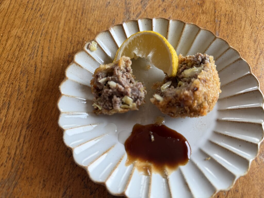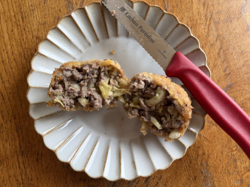 最後のお肉でキャベツメンチ作りました。