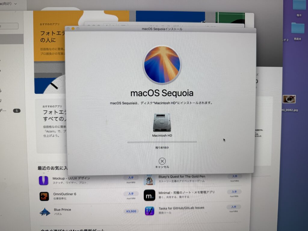 なので、今日やっているアップデートまだ終わらずなんです。