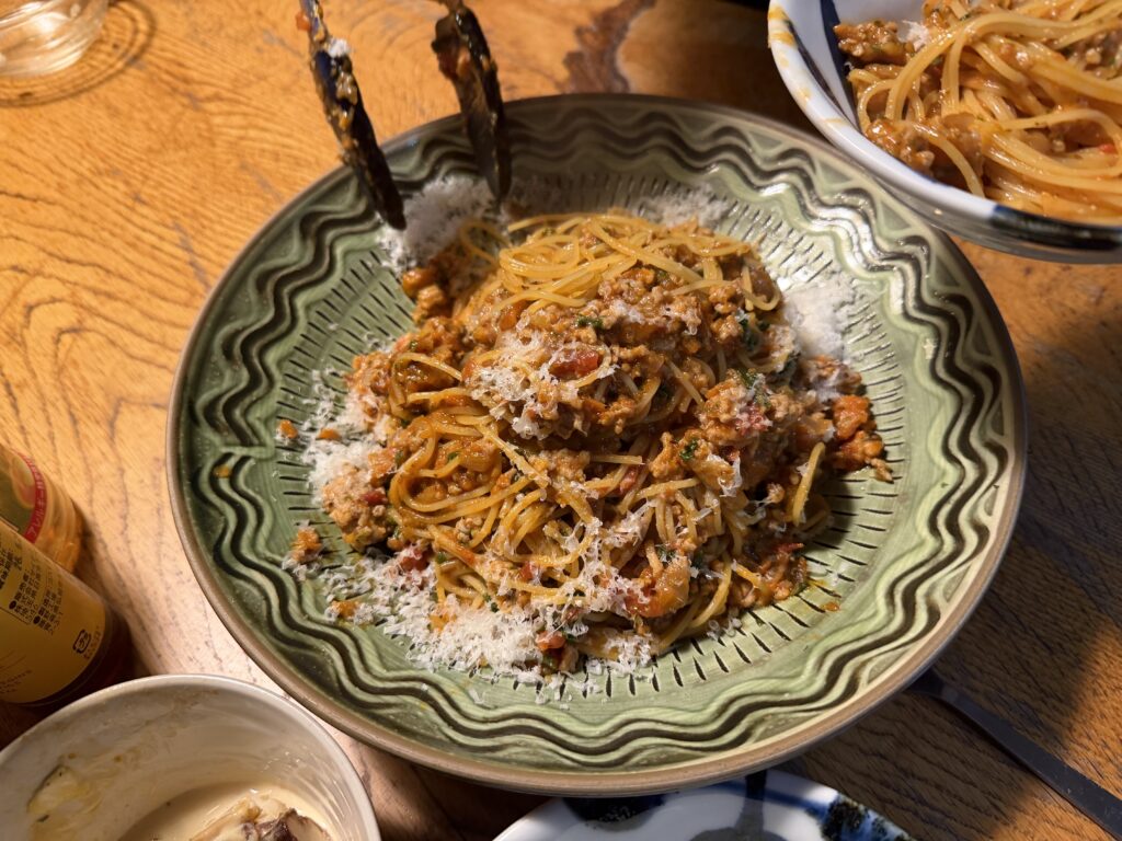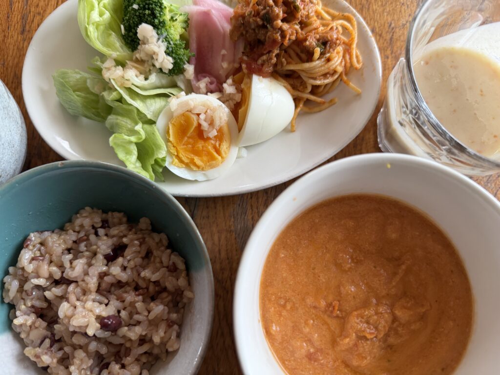 昨日はひき肉を買ってきてもらい、玉ねぎとトマト缶を足して、ミートソース作りました。