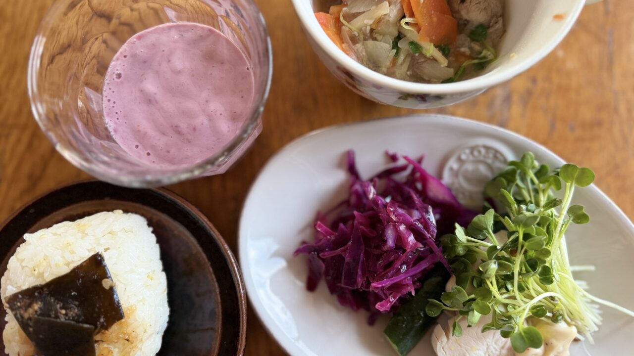 今朝のような簡単ご飯でも、一応15品目は入っていて、バランスは取れている。