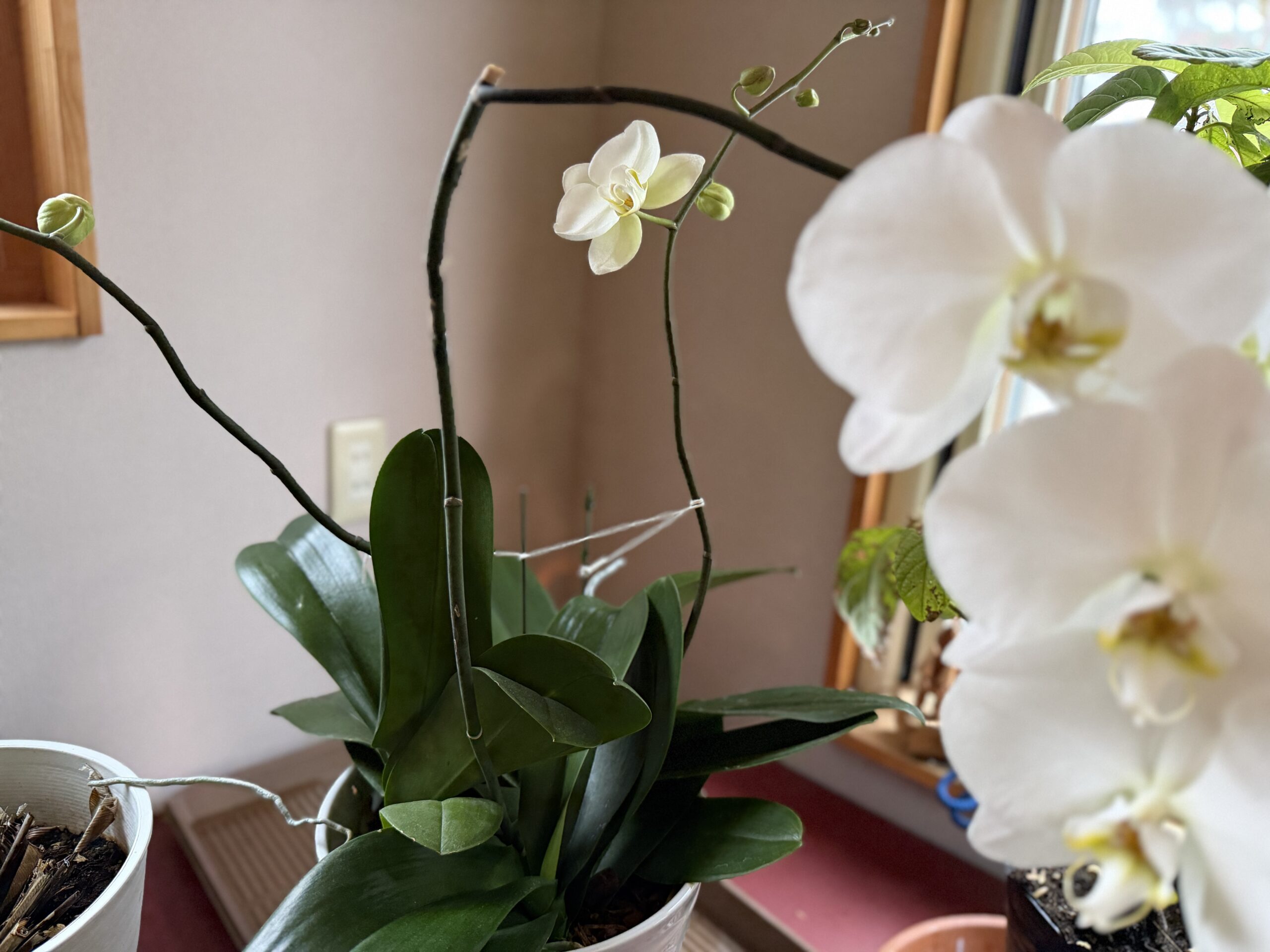 3株入っている2年目の胡蝶蘭ですが、1株は途中で切り、2株は根本から切って。