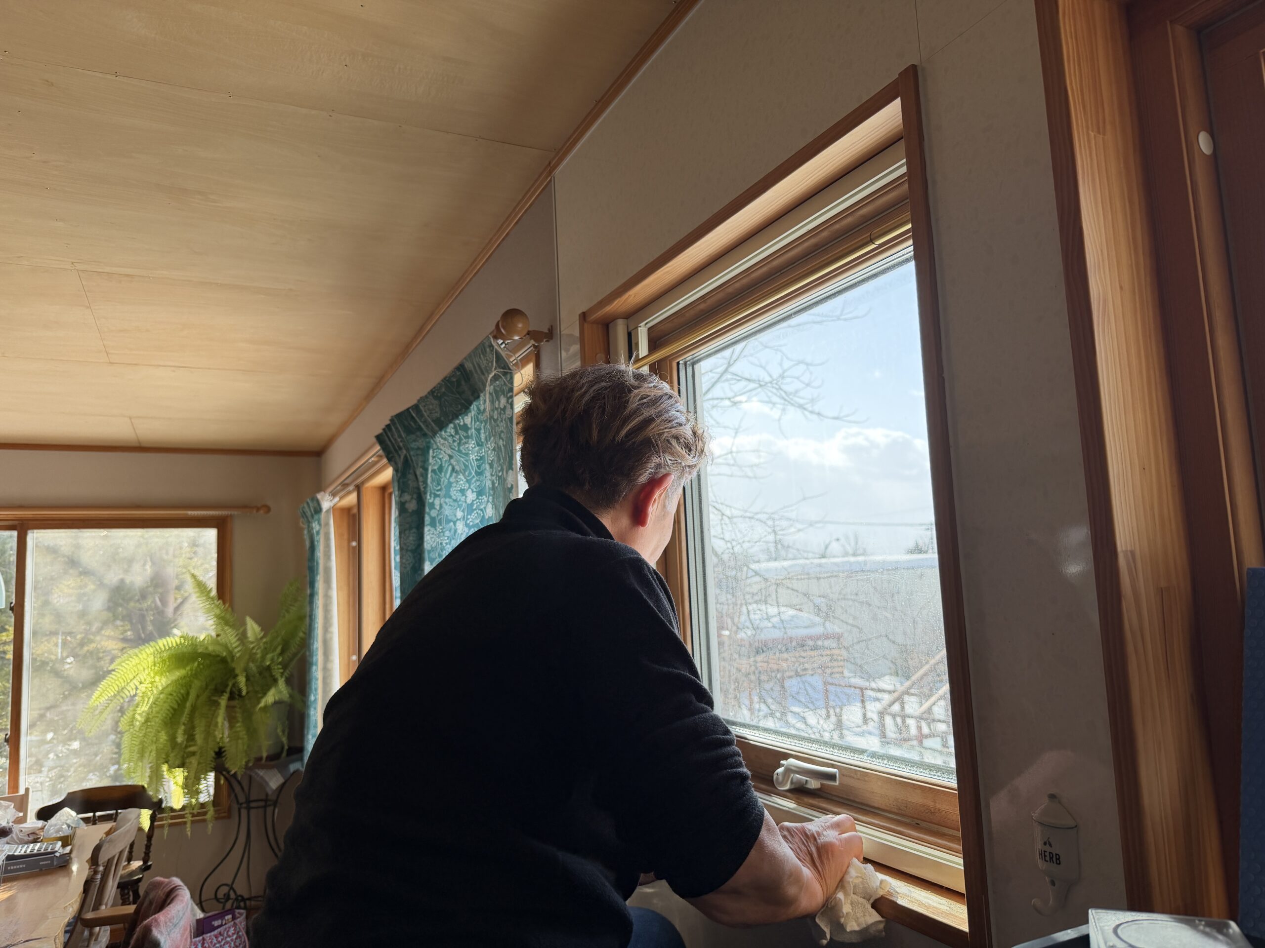 今日は風が強かったけど、気持ちのいい晴れだったので、エイや〜と気合い入れて窓枠の掃除からオイル塗り込みまでやる気になり。