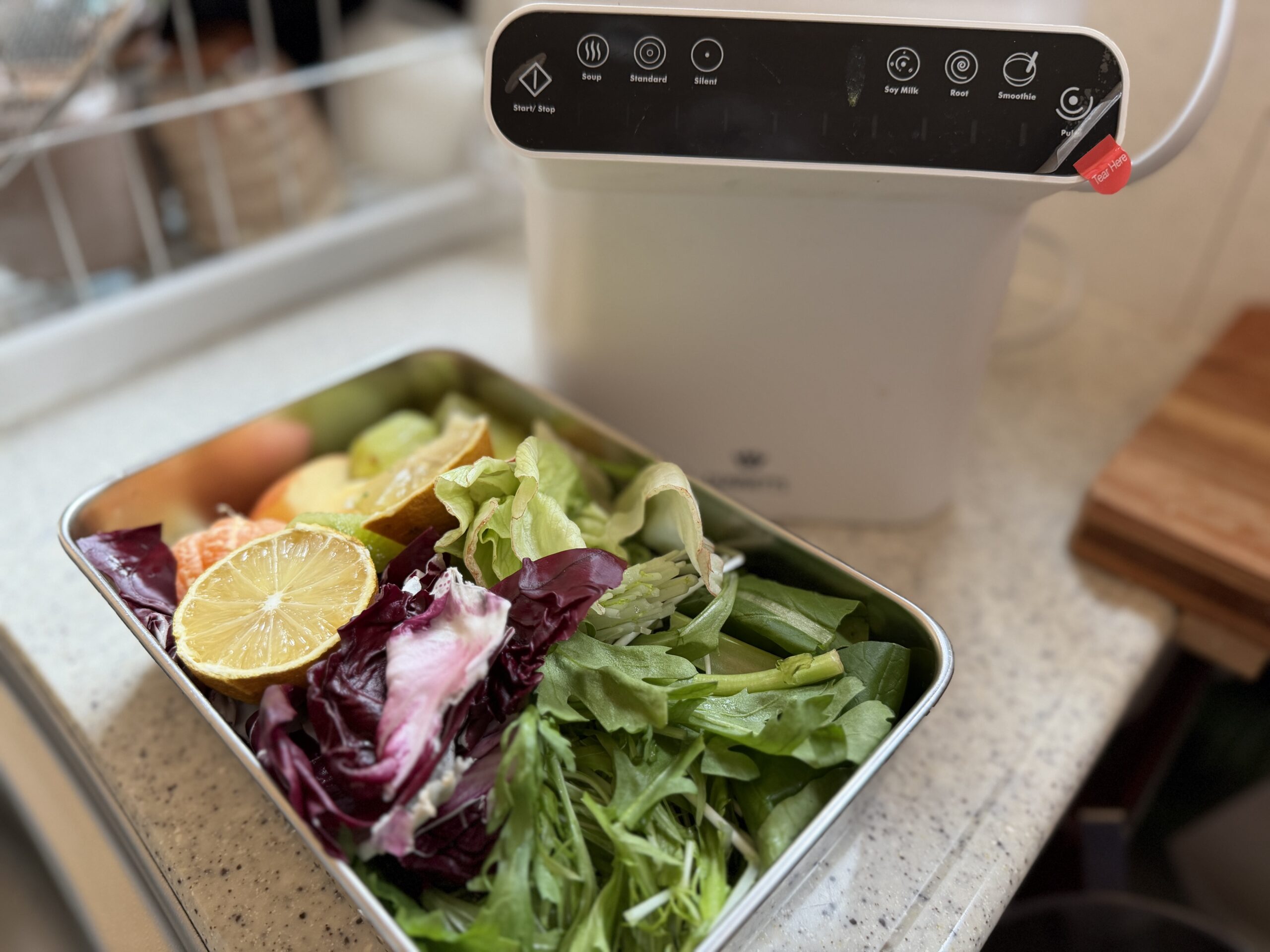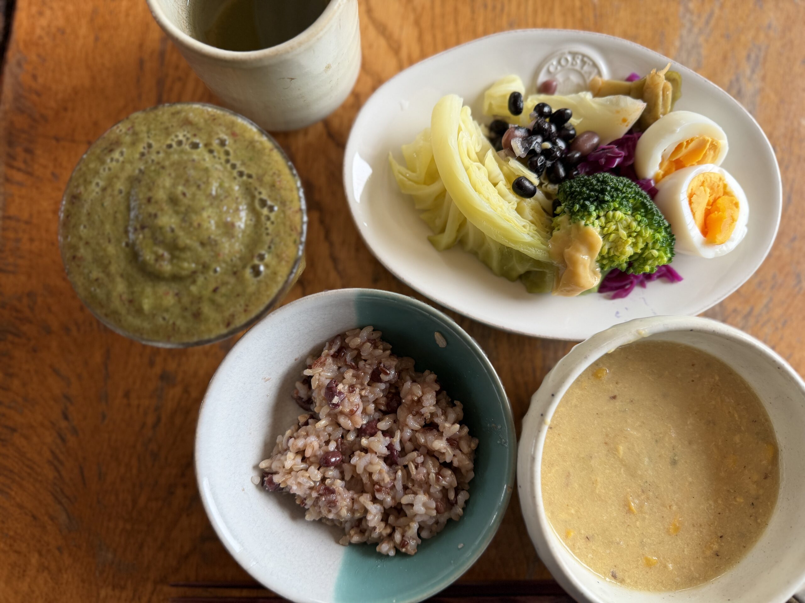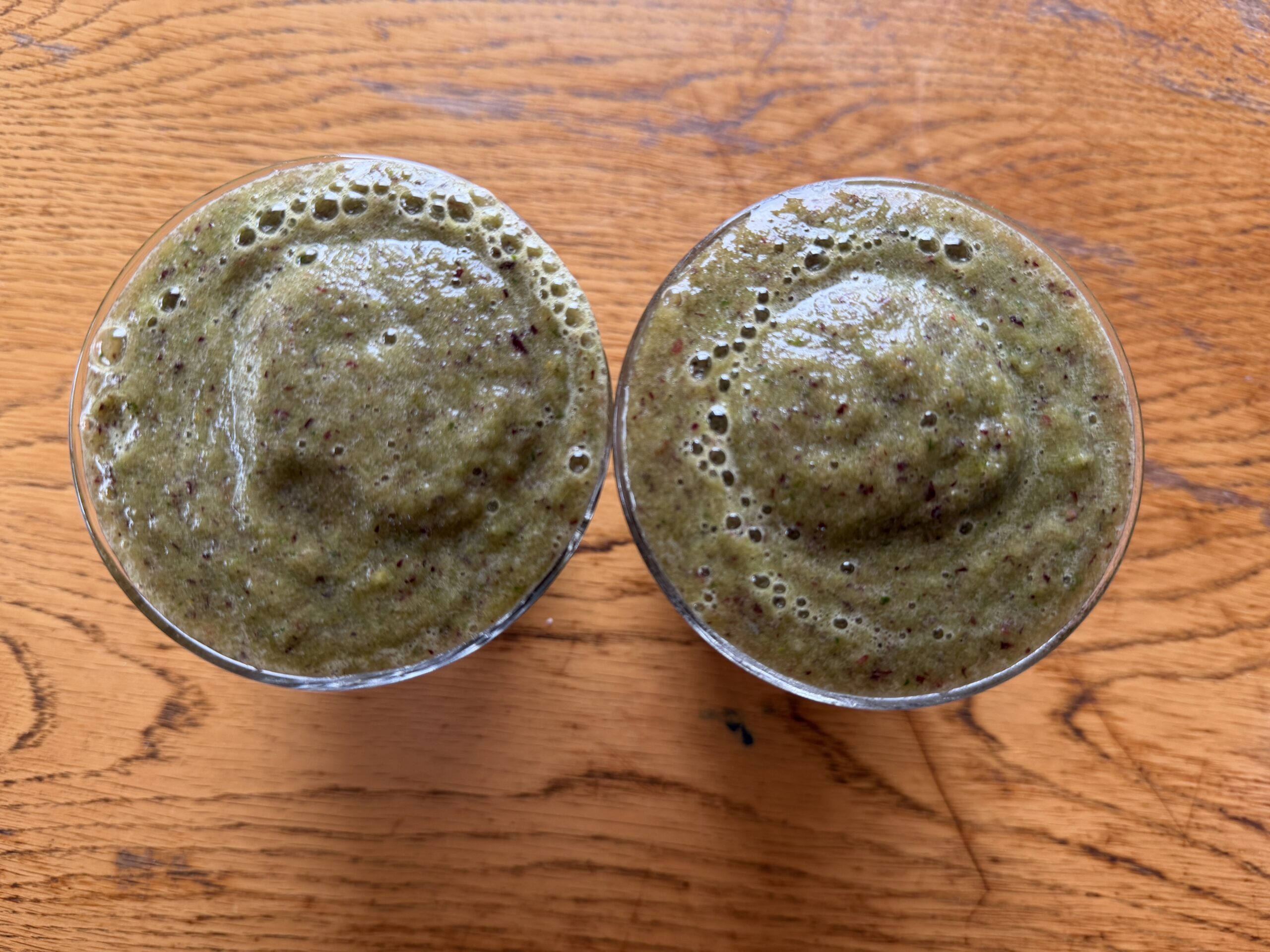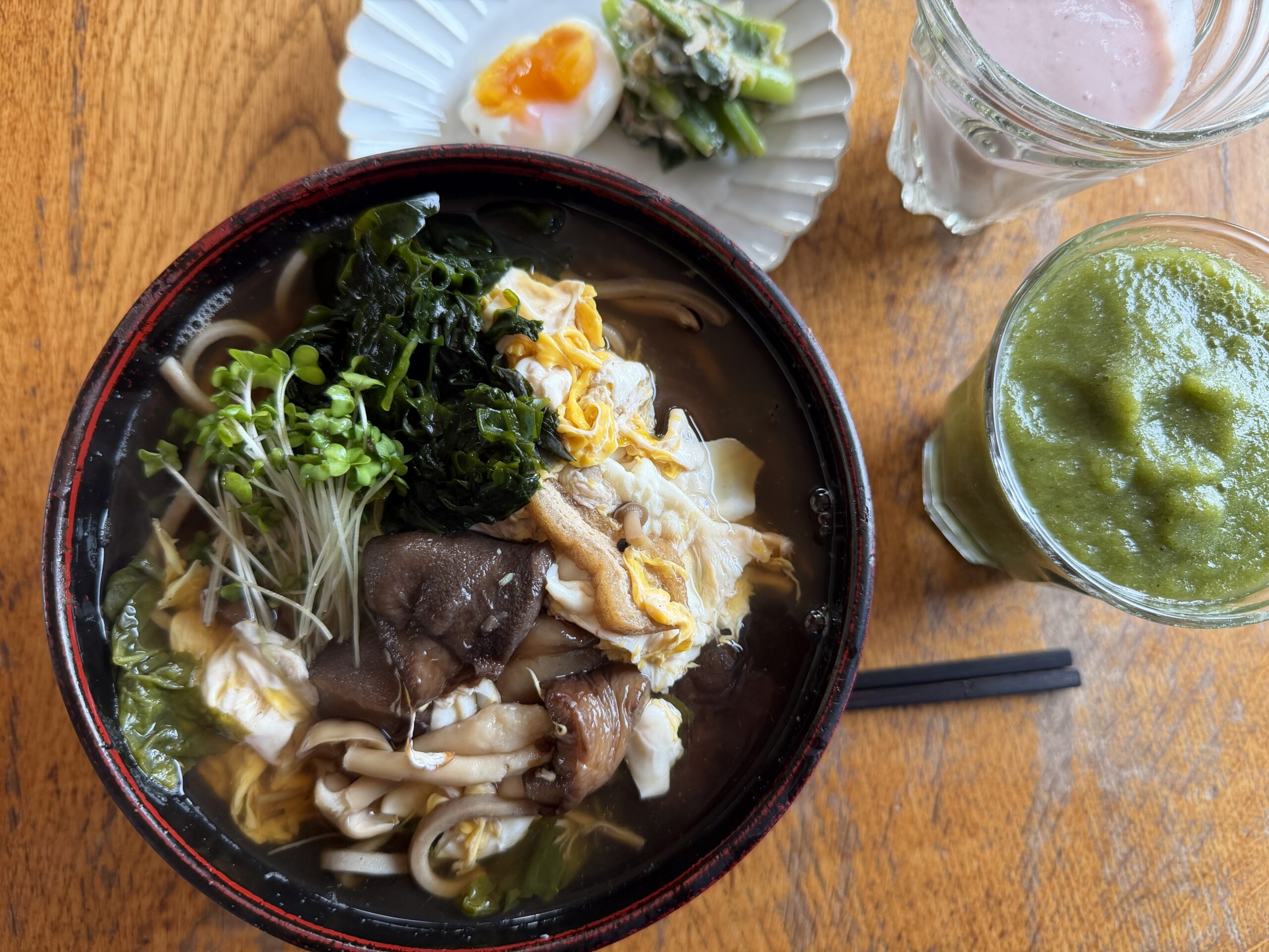 普通ご飯と食べるのは茹で野菜、蒸し野菜が多いので、生野菜をたくさん摂るためにグリーンスムージー再開。