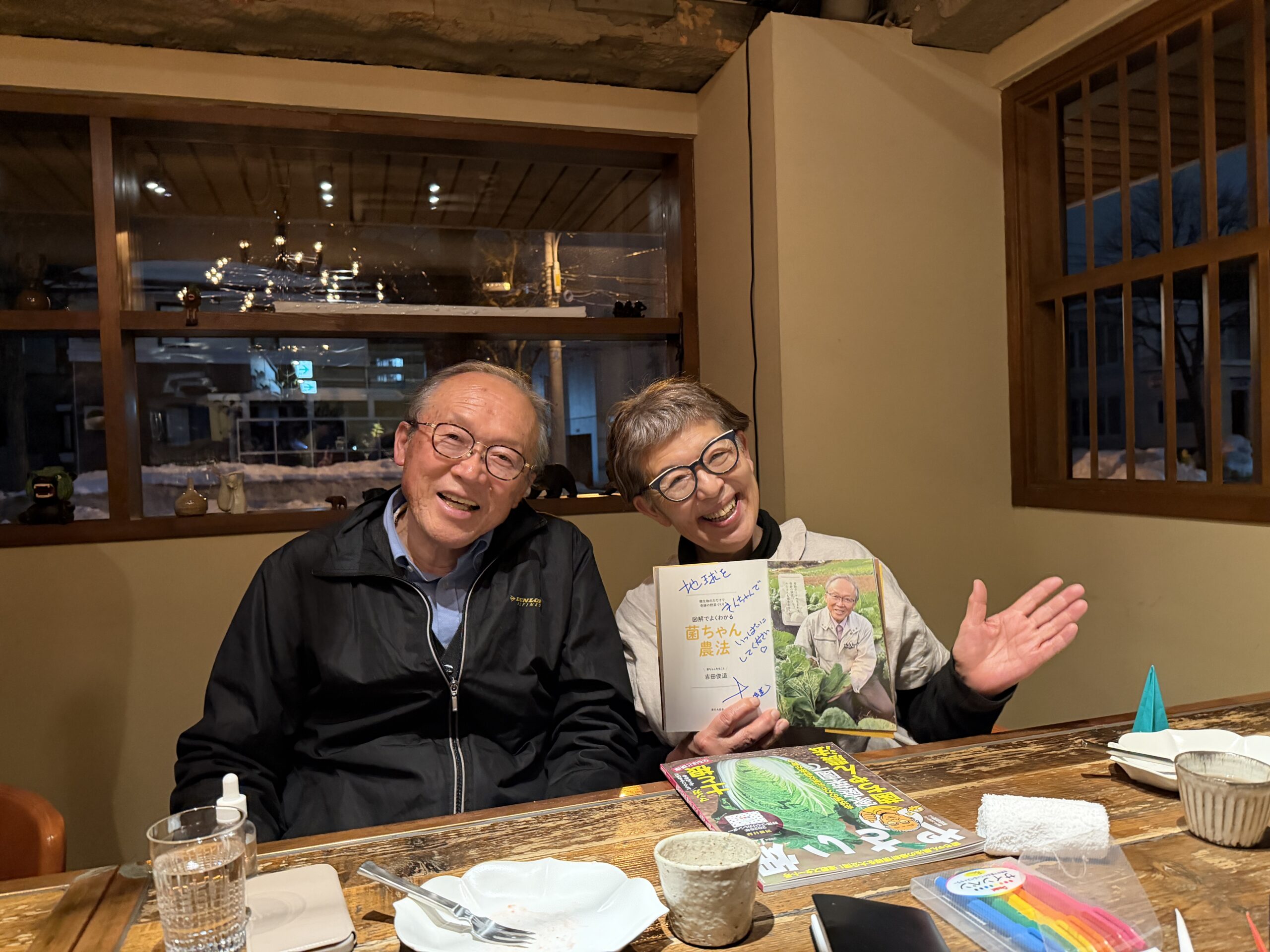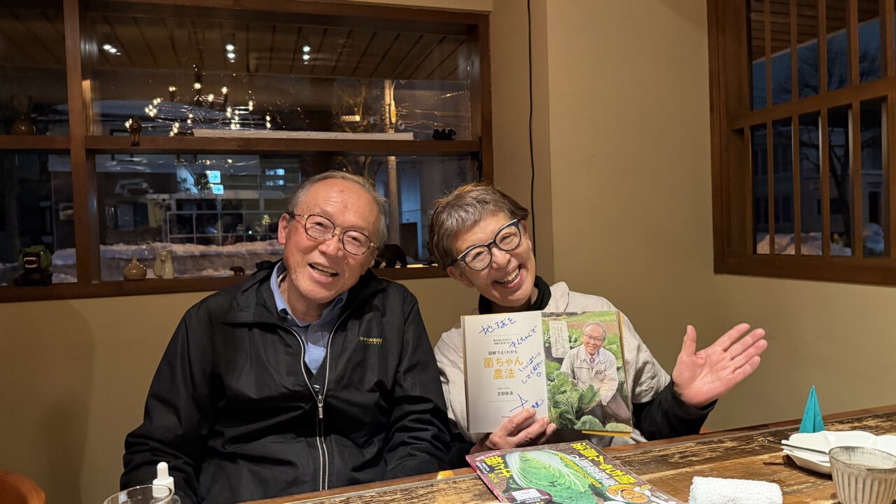 勉強会から同席したのは、北海道の森づくり、再生事業で指導されている岡村先生、岡本先生のお仲間で菌ちゃん農法を実践されたり興味持っているお二人。