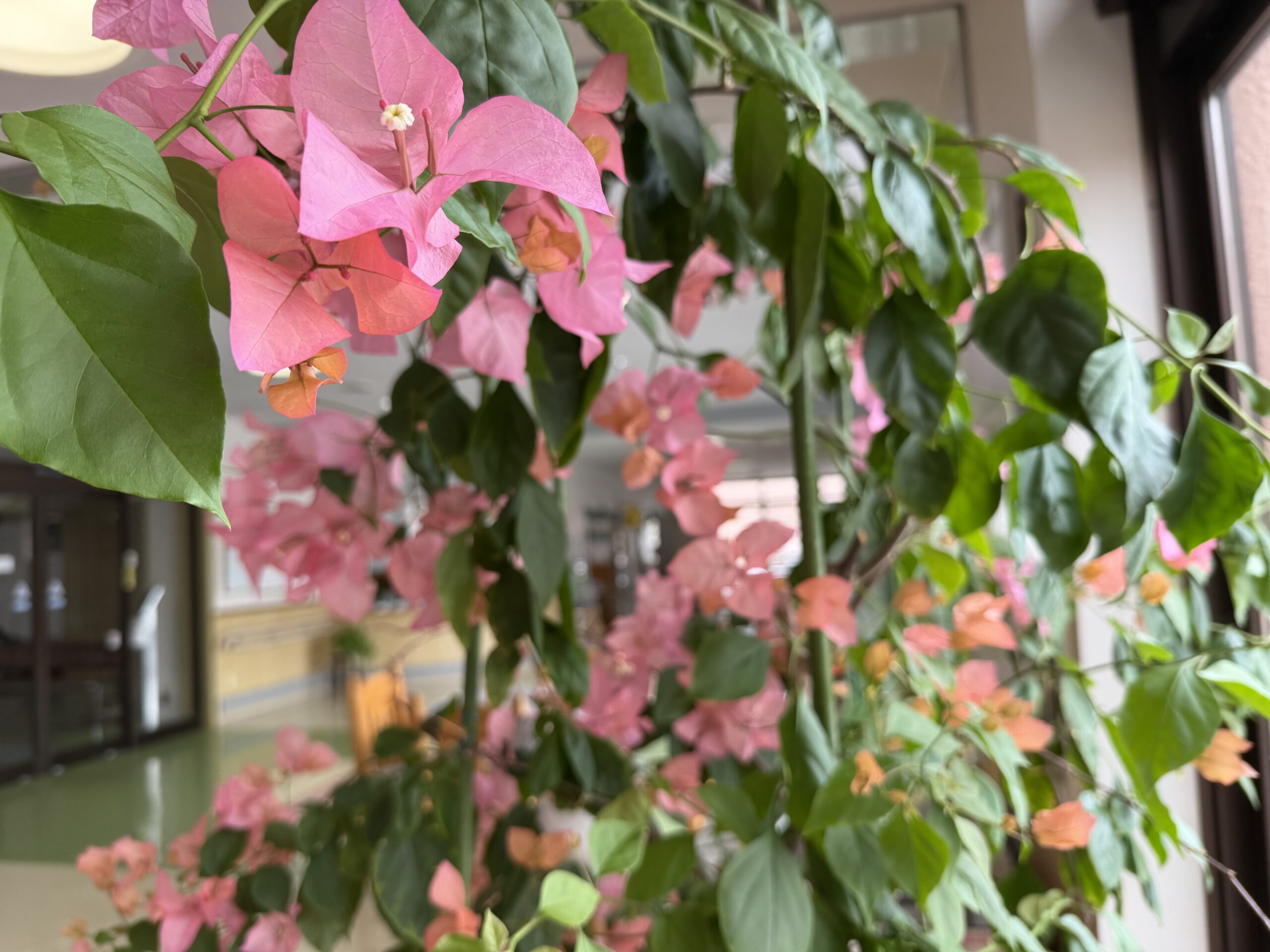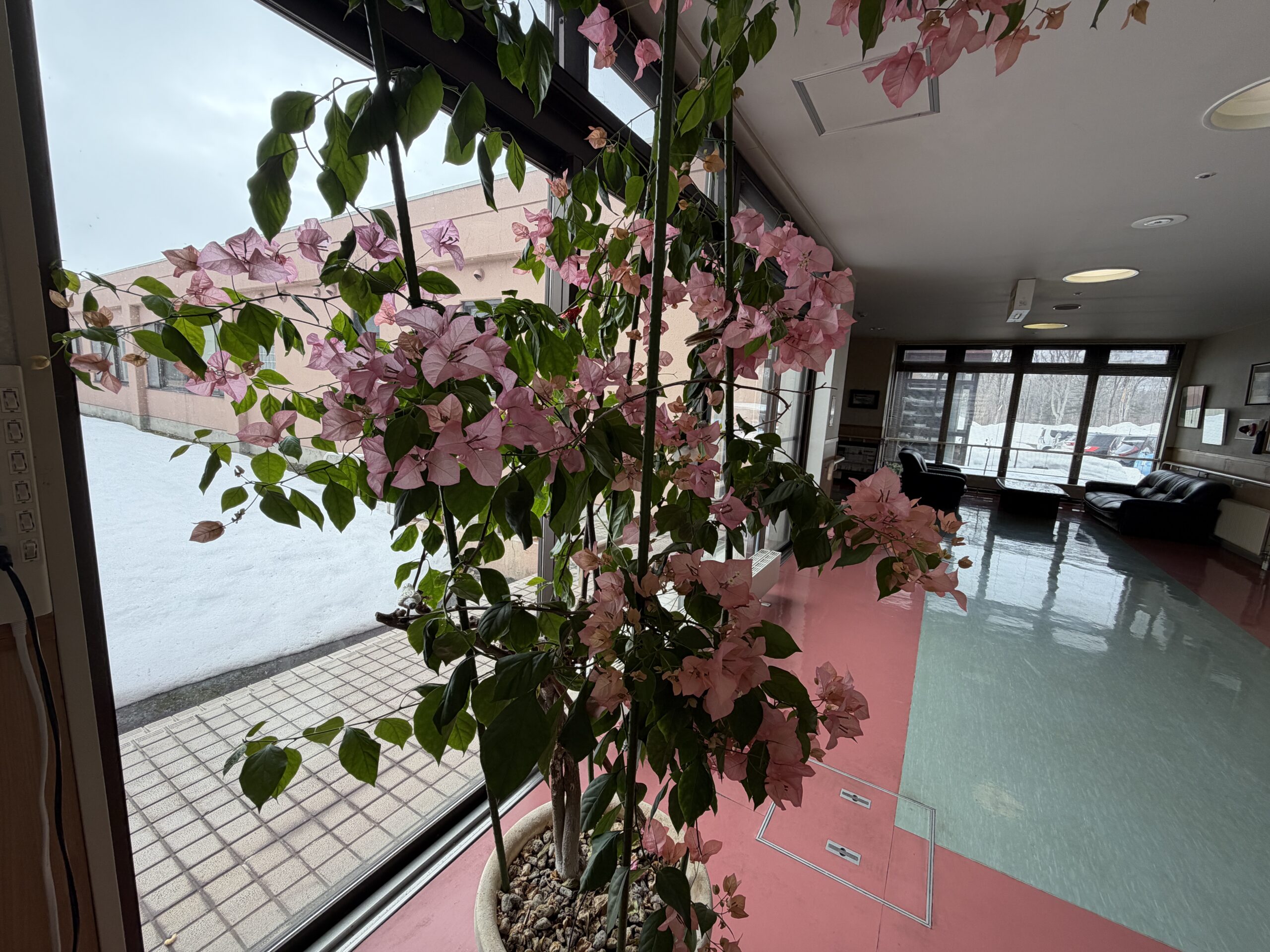 施設の玄関ホーで、大株が見事に咲いていました。