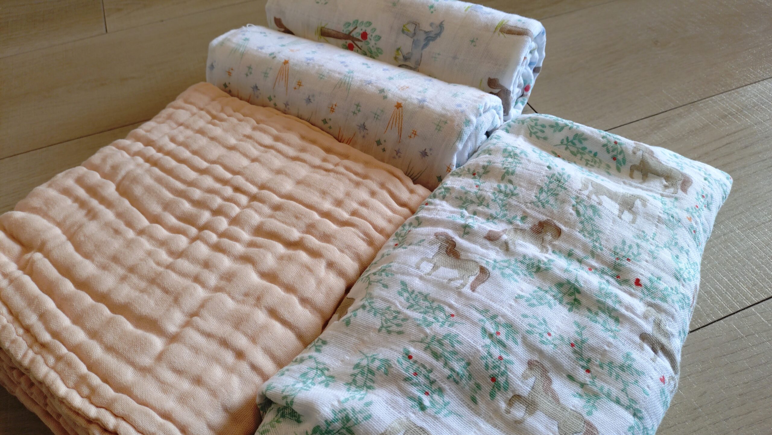 赤ちゃん用のガーゼのタオルとおくるみなどに使えそうなガーゼの大判シート?布。