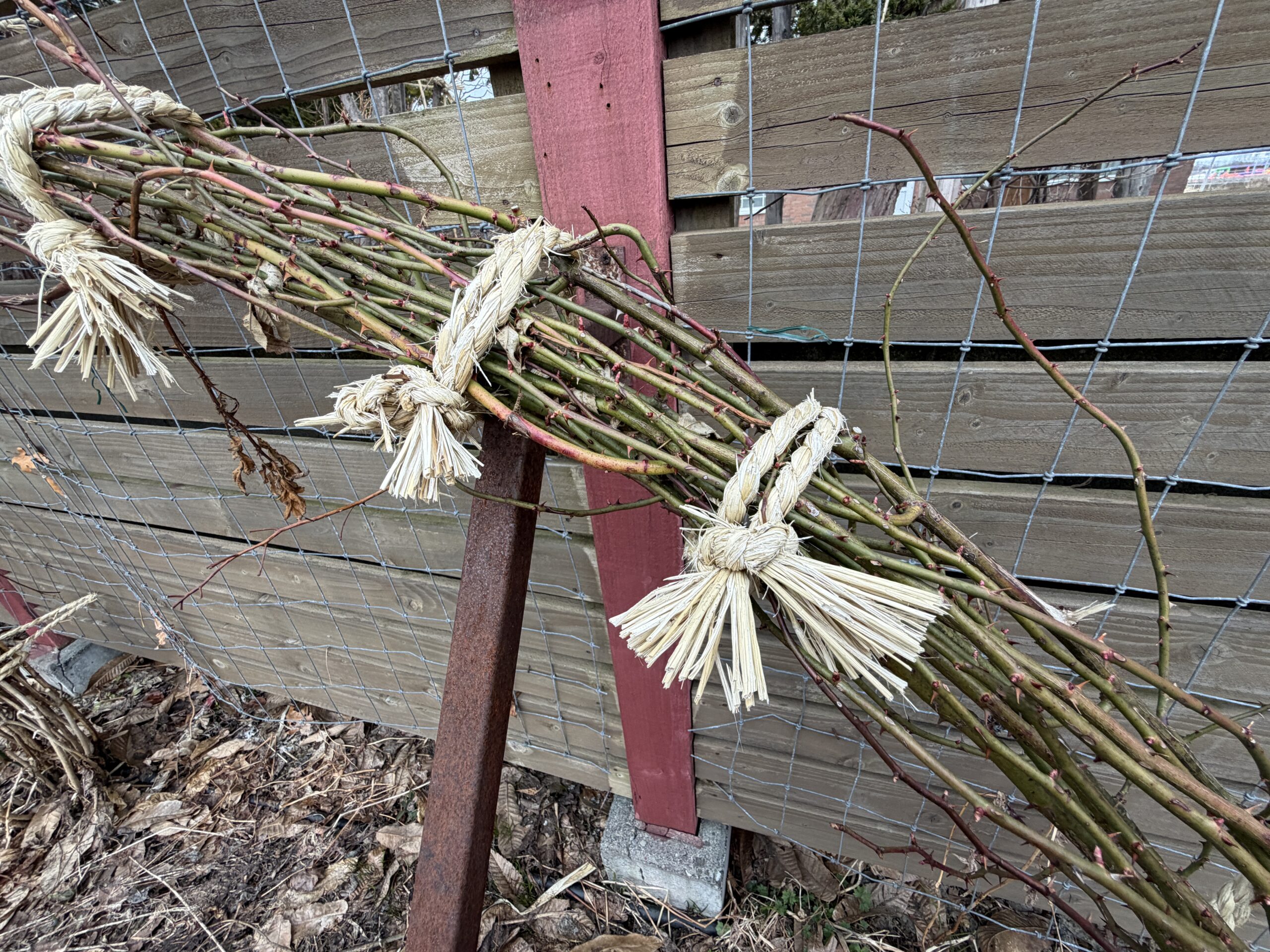 つるバラはもう芽が出ている。