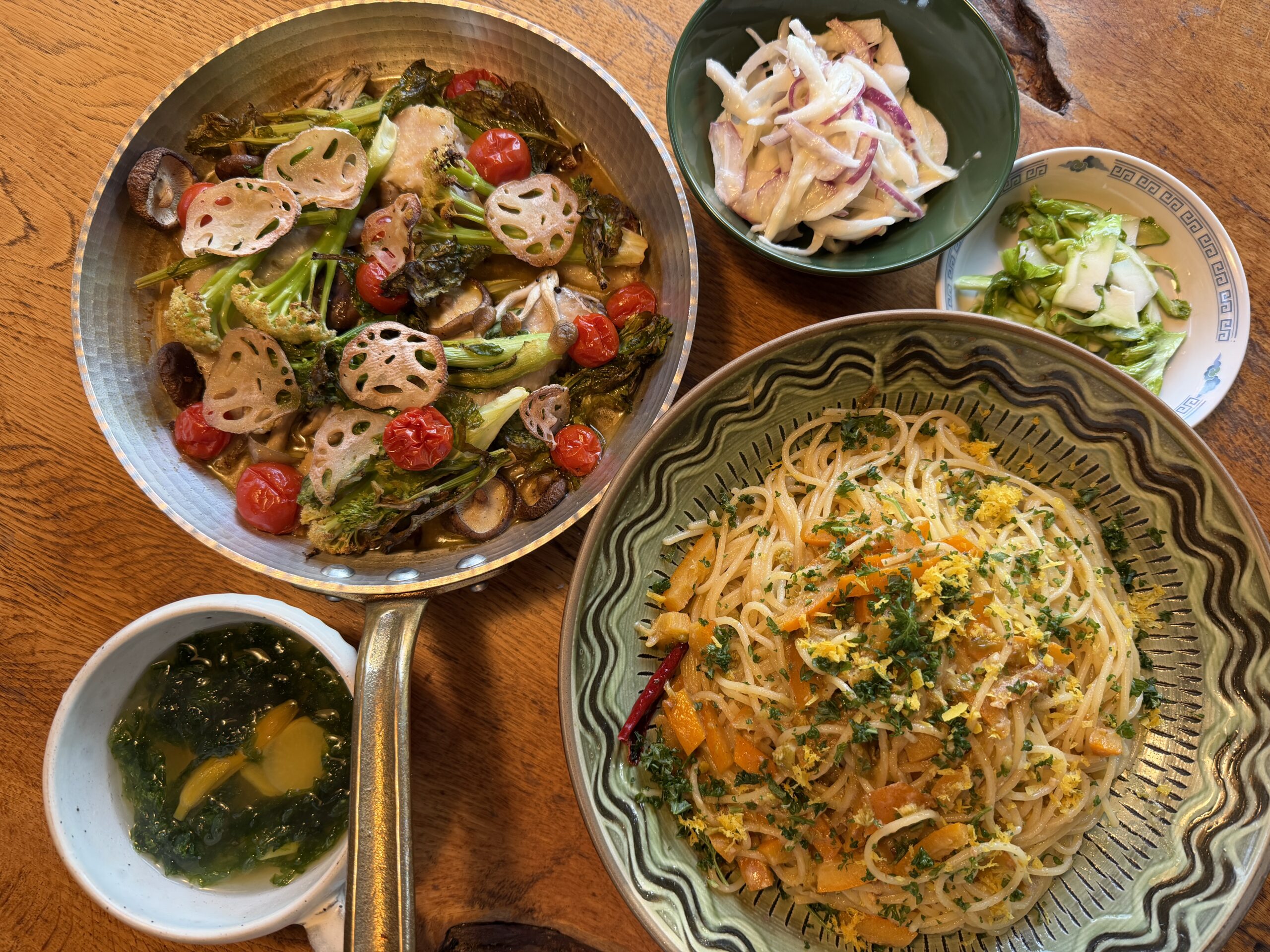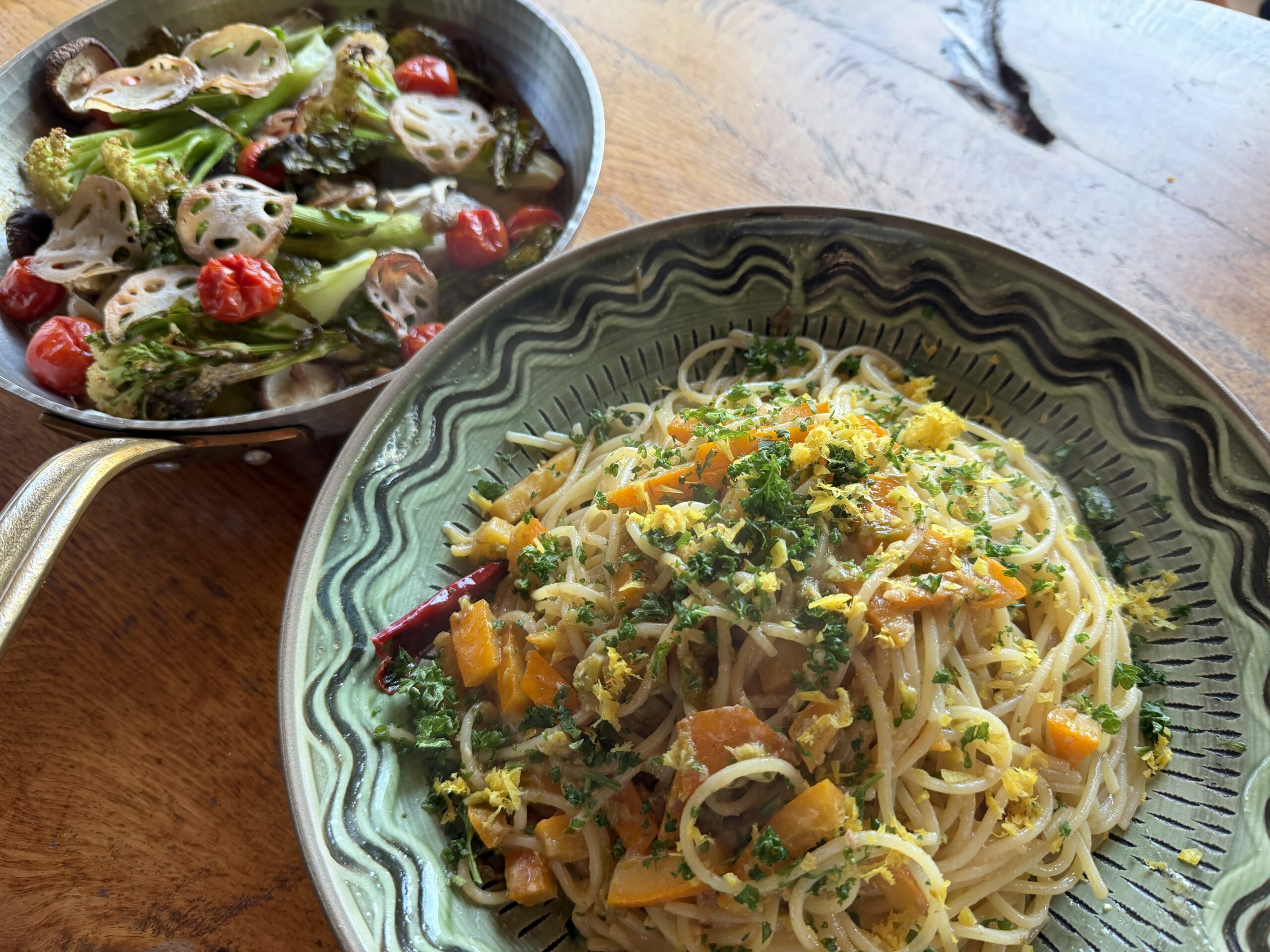 最初、予定にはなかったけど、蕗のとうがちょうどいいくらいだったので、蕗のとうレモンパスタにして,先日作った柑橘のマリネも入れましたよ!