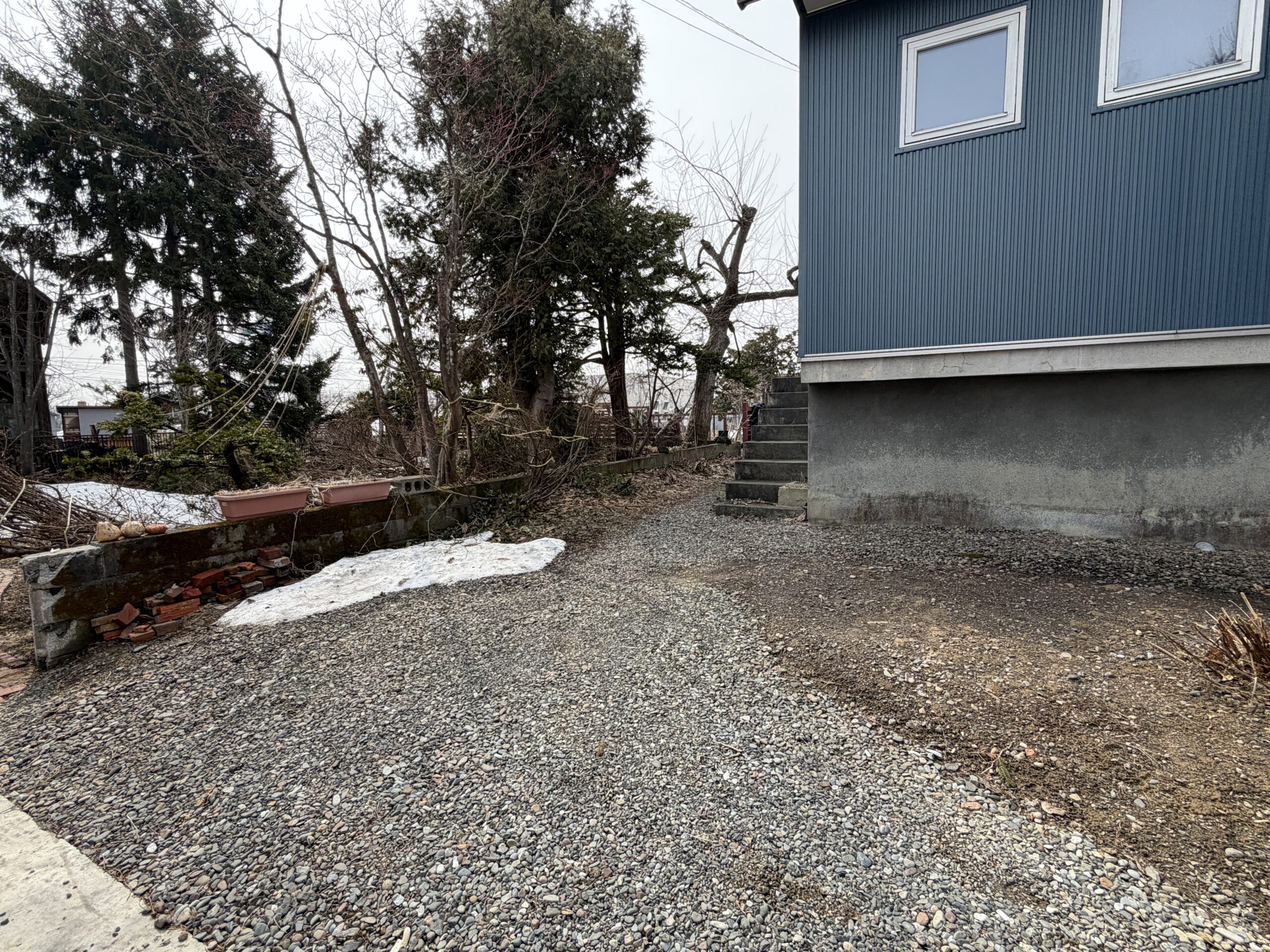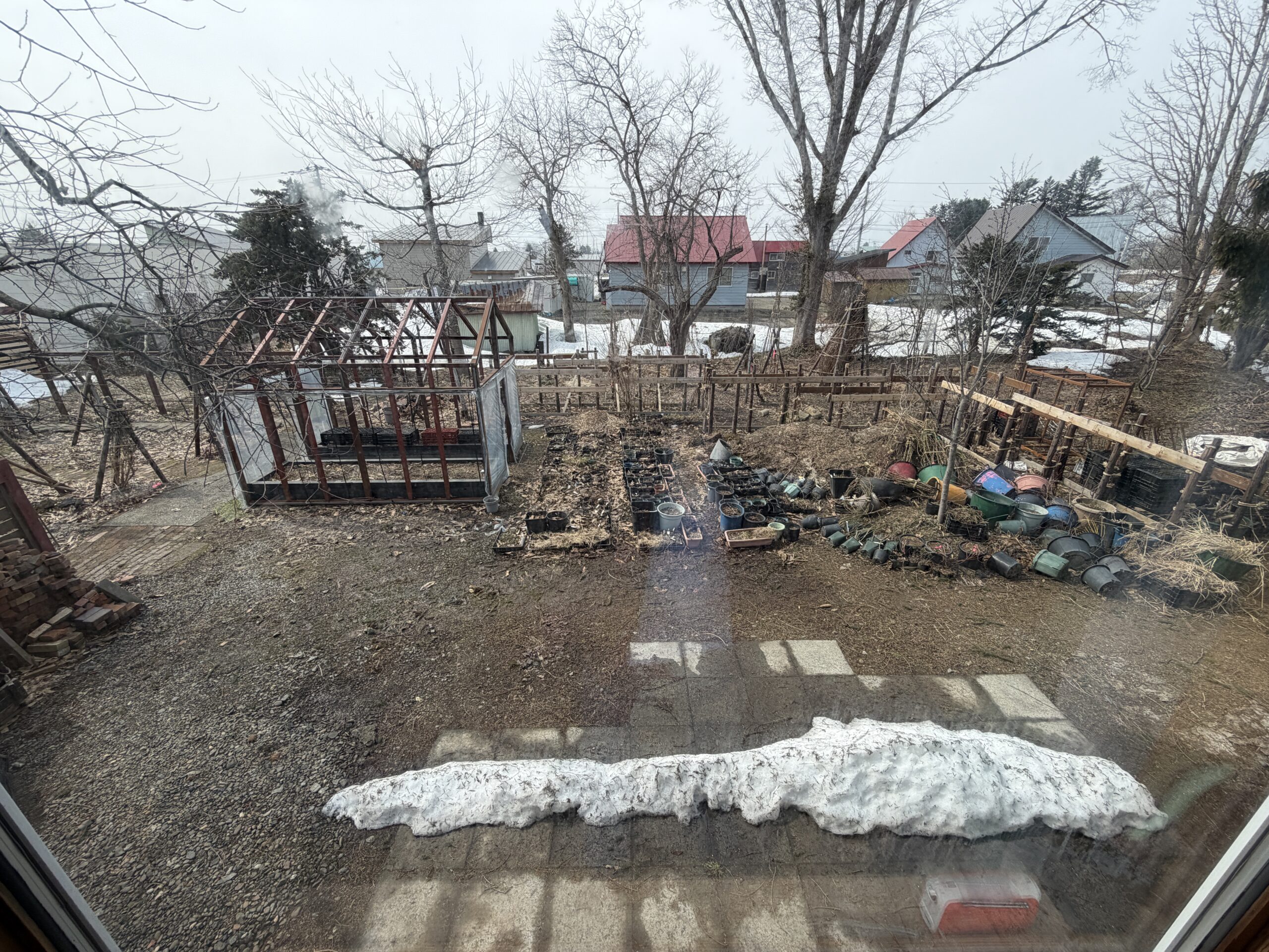 雪国の皆さんには見慣れた雪解け直後のカオスな庭。