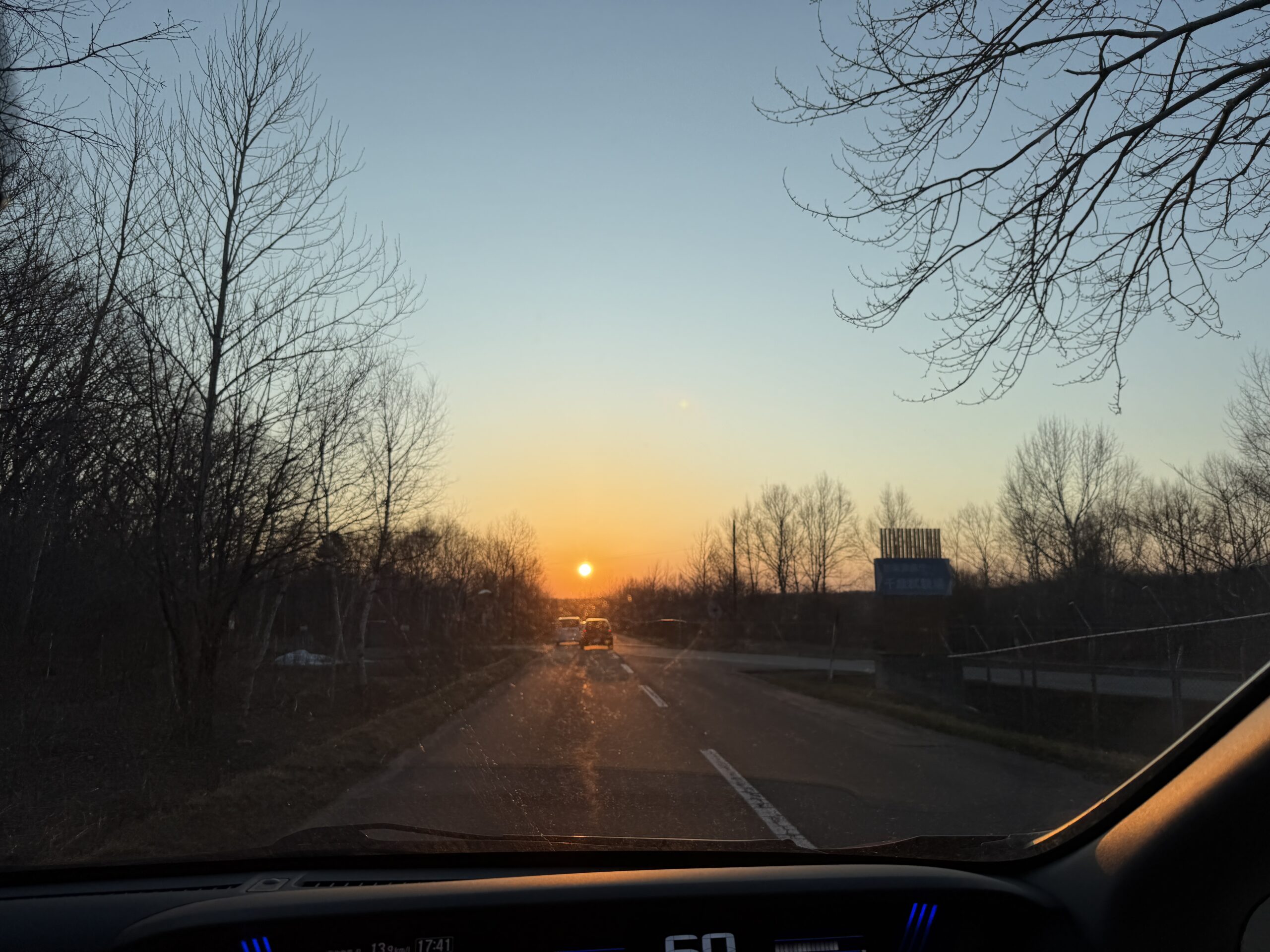 打ち合わせたっぷりで,帰りの道中は綺麗な夕日でした。