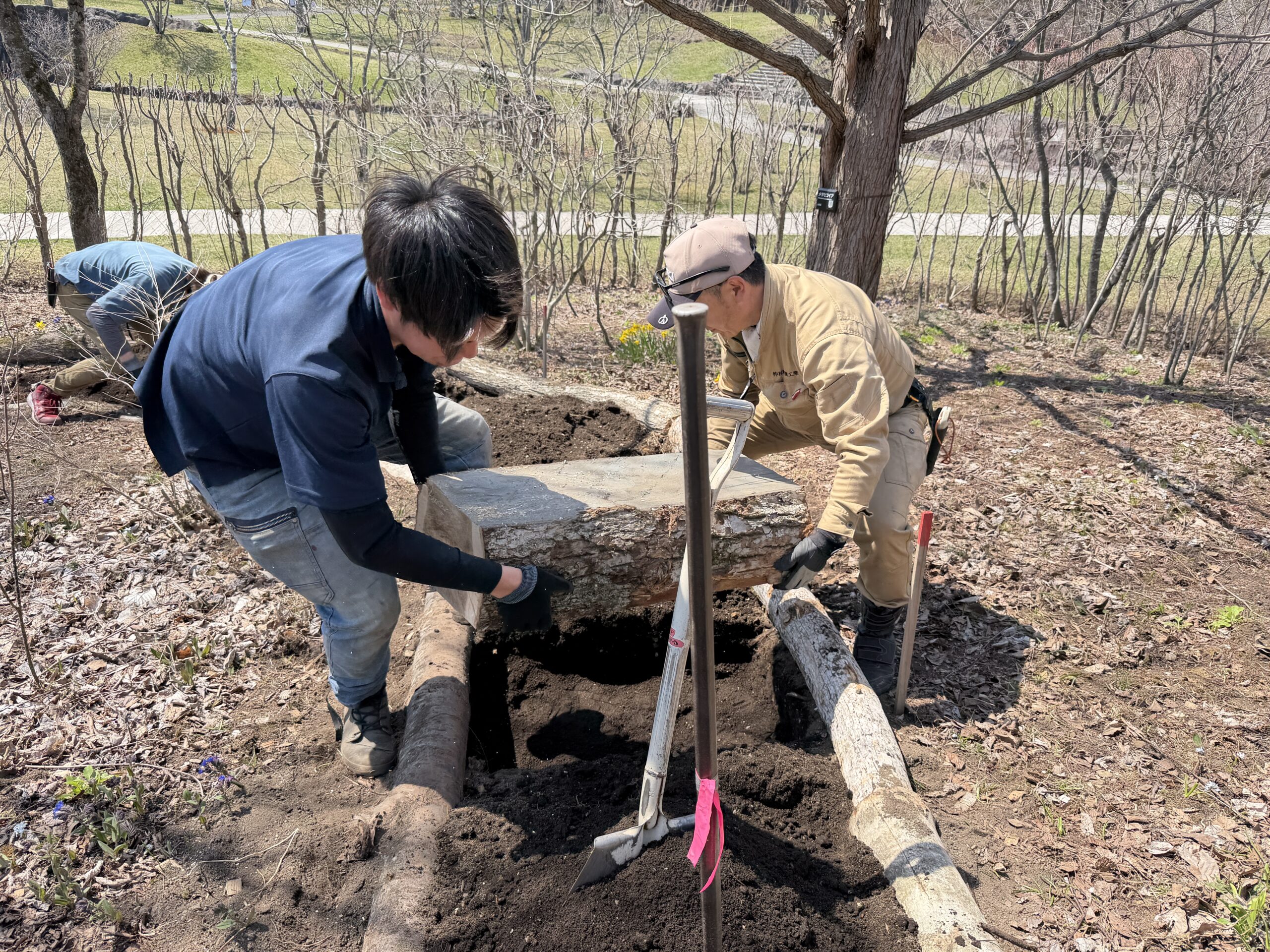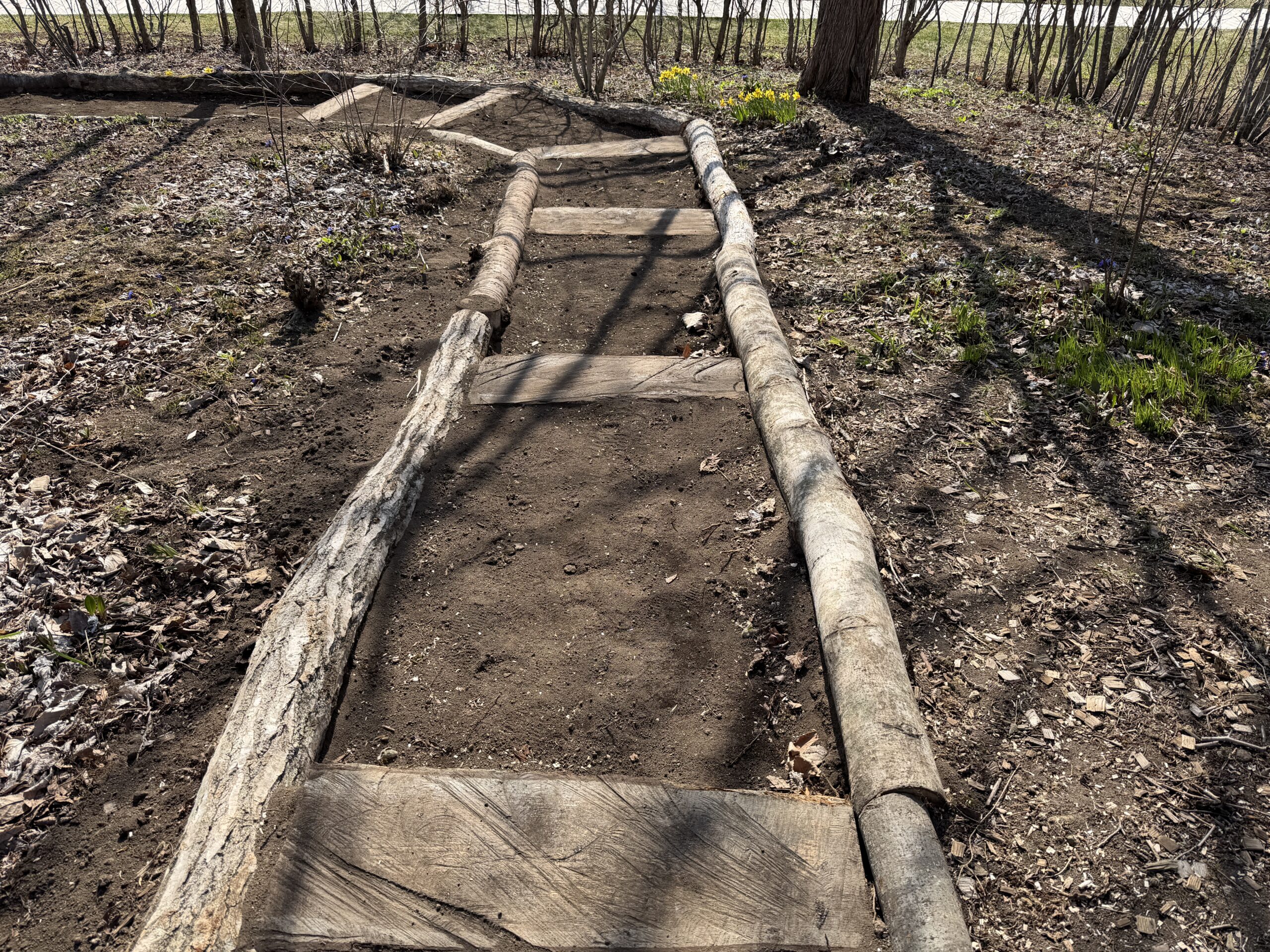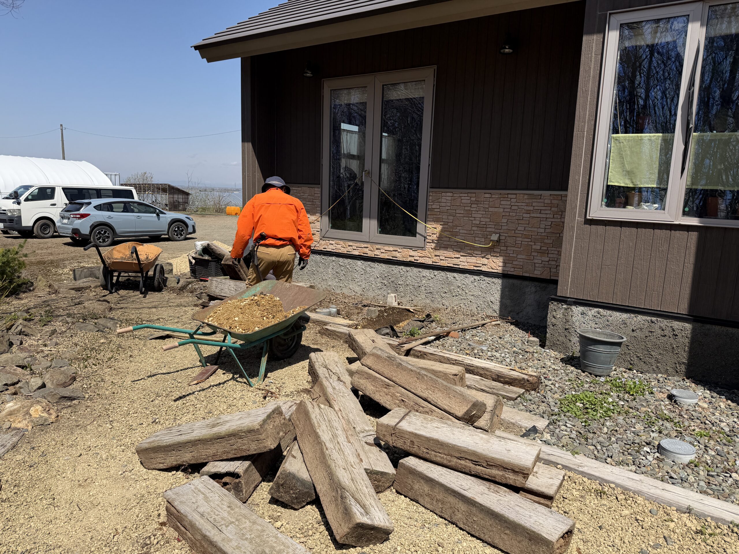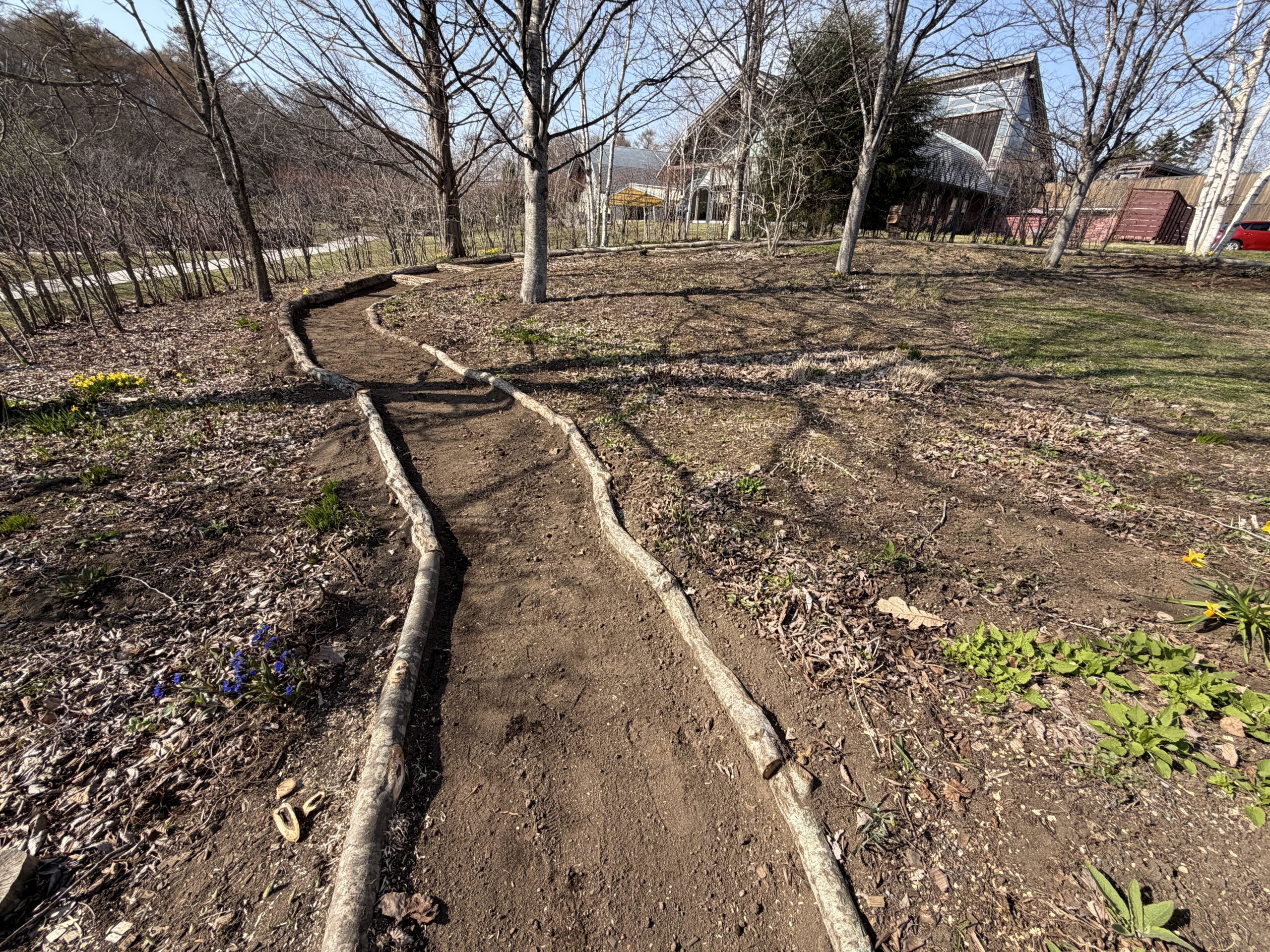 最初、枕木を考えましたが、自然木で作ったこちらの枕木風がマッチしています。