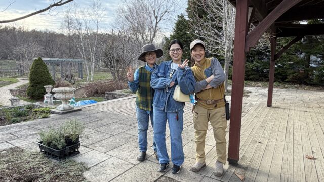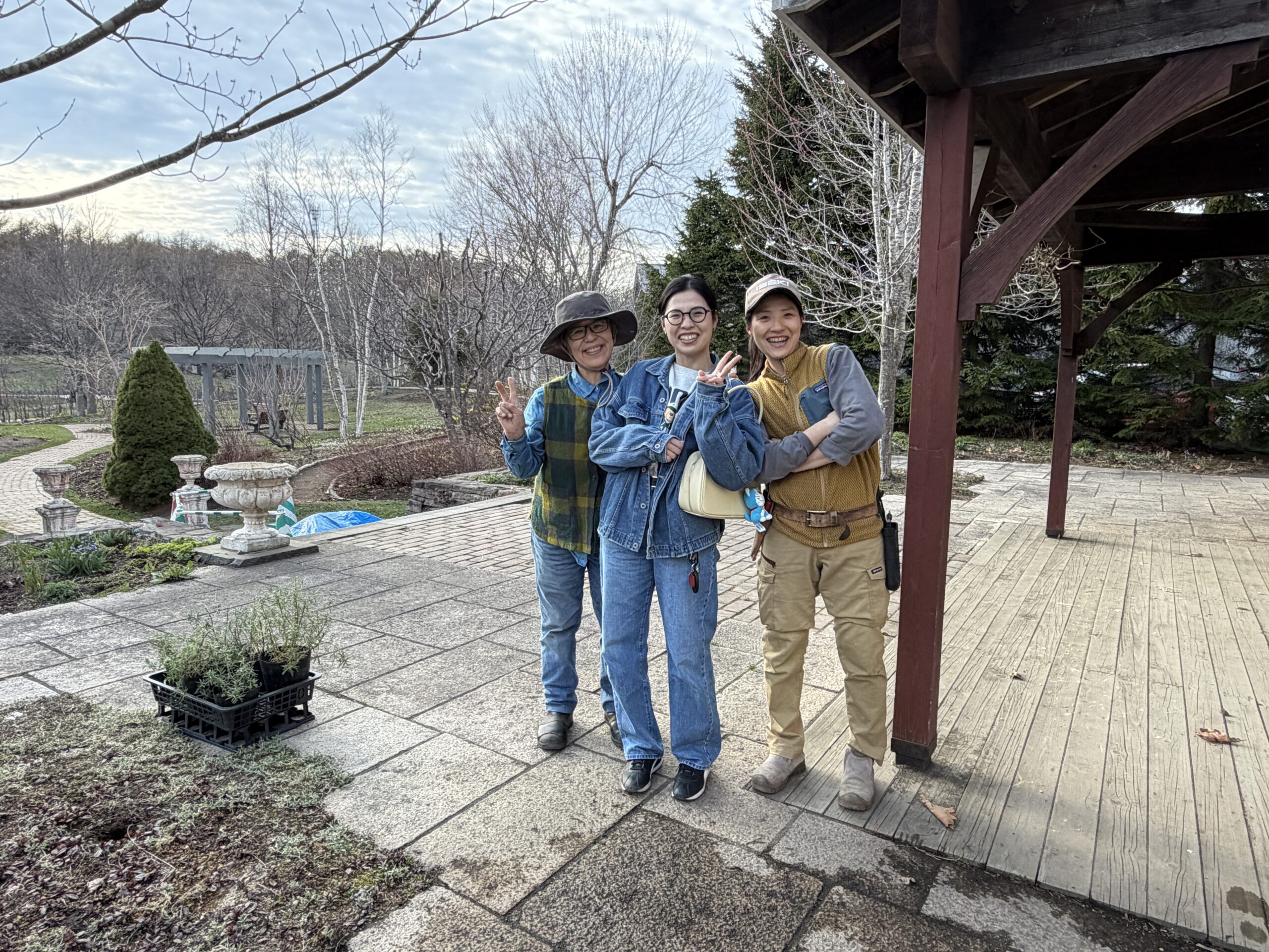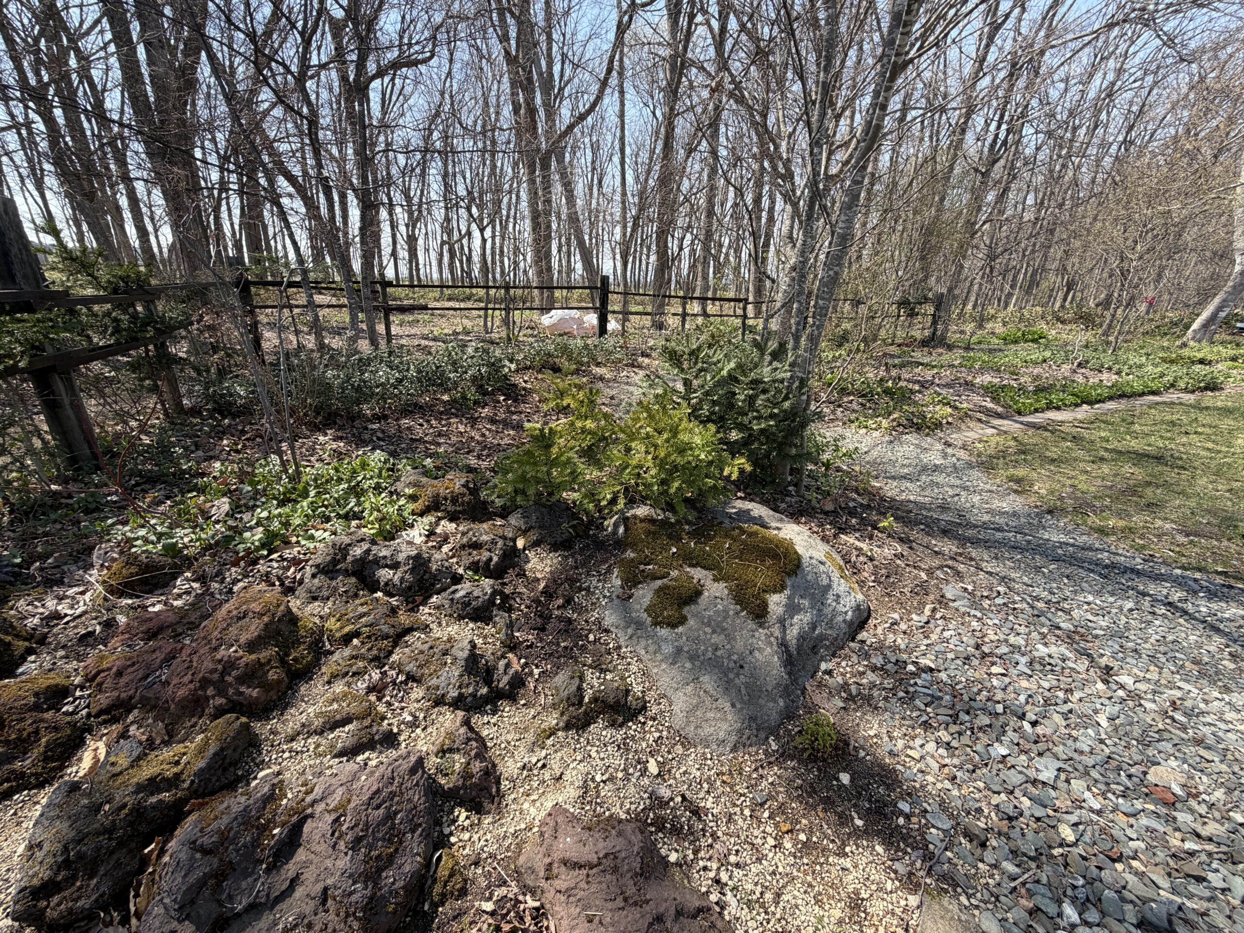 こうして春が始まったばかりの庭で、北海道では数少ない常緑の緑が輝いている。