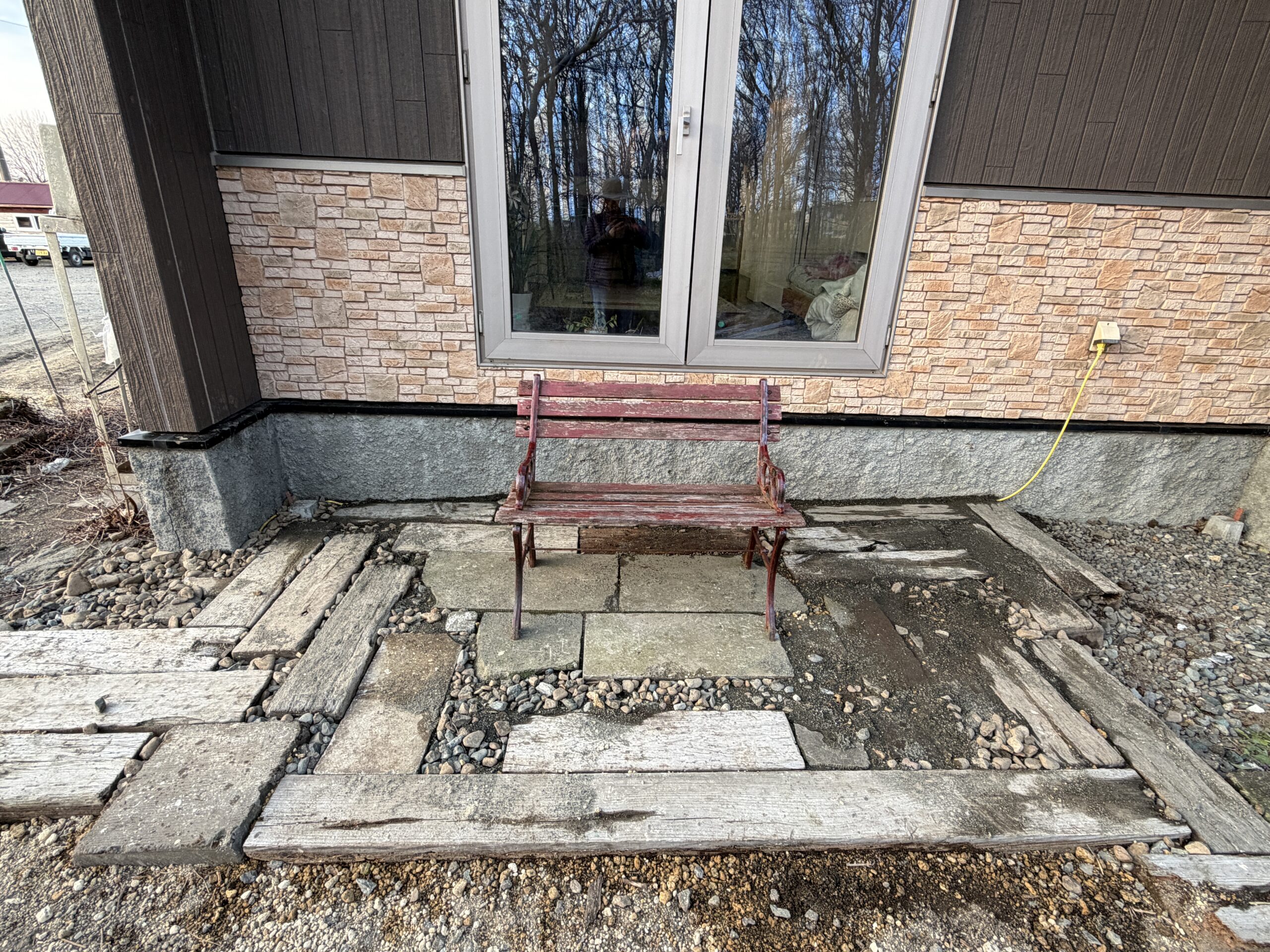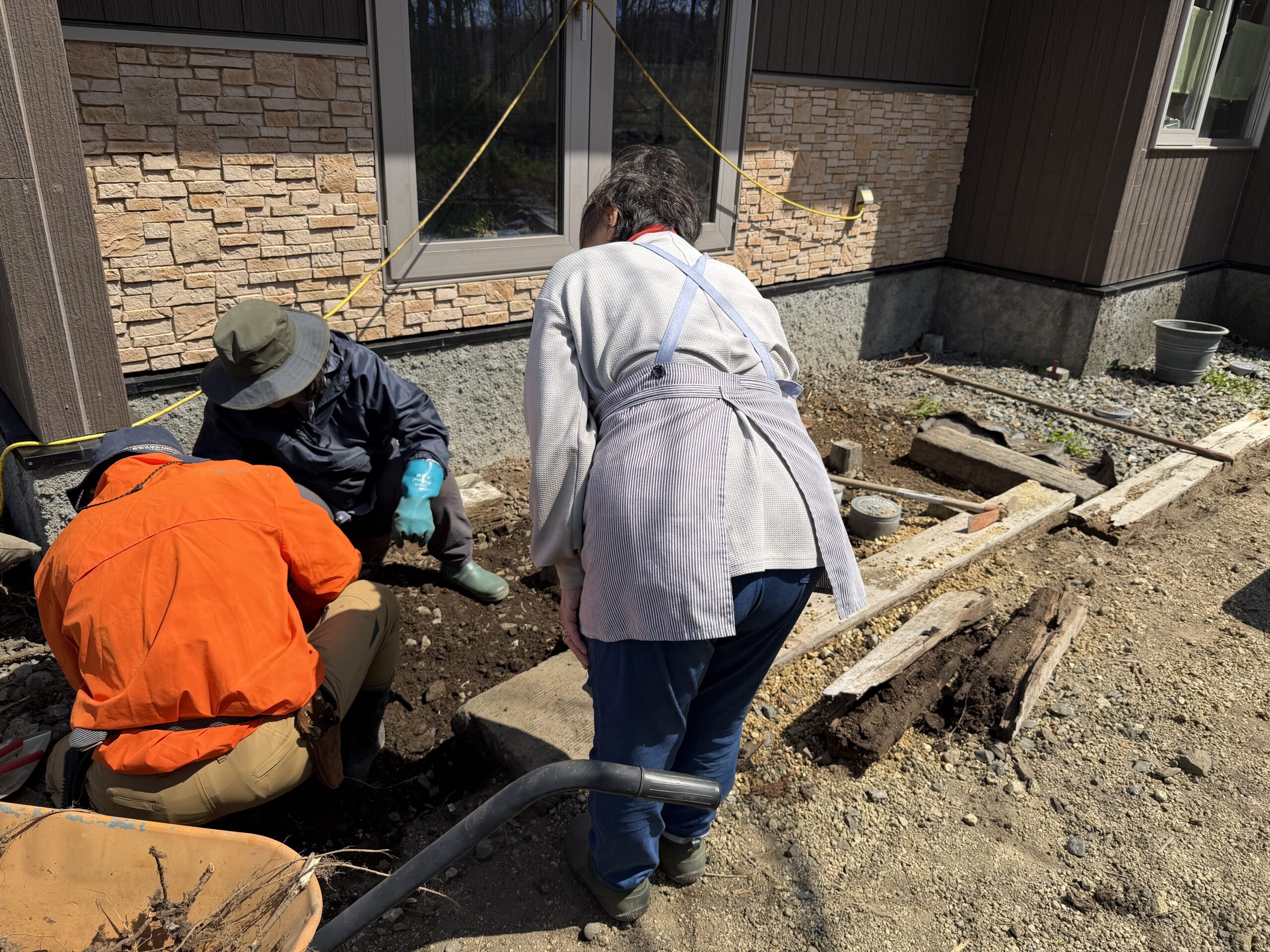 このままでいい感じもしますが、雨が降ると靴裏が汚れるのでウッドチップを敷きます。