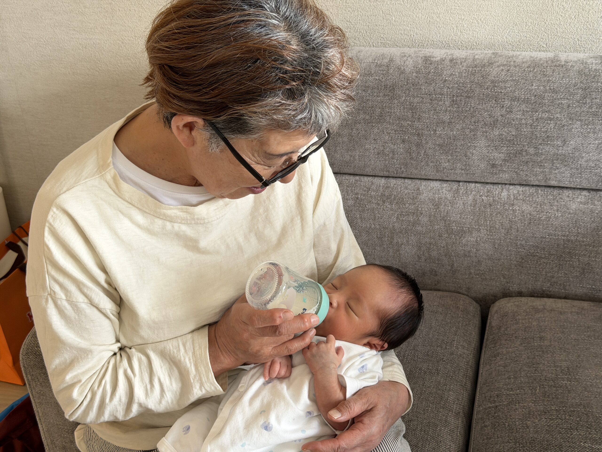 ズーーっと寝ていたけど、少し早めにミルクタイム。