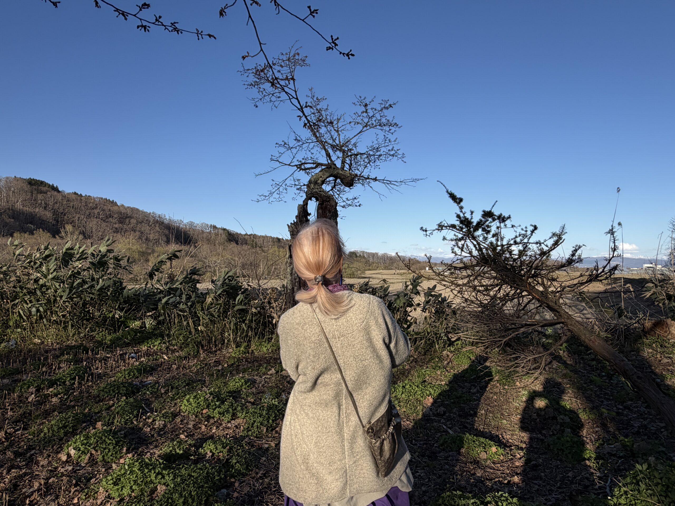 月形はようやく早いサクラが開花してきたので、母が毎年会いにいっている地域の神社の一本桜を見にいってきました。