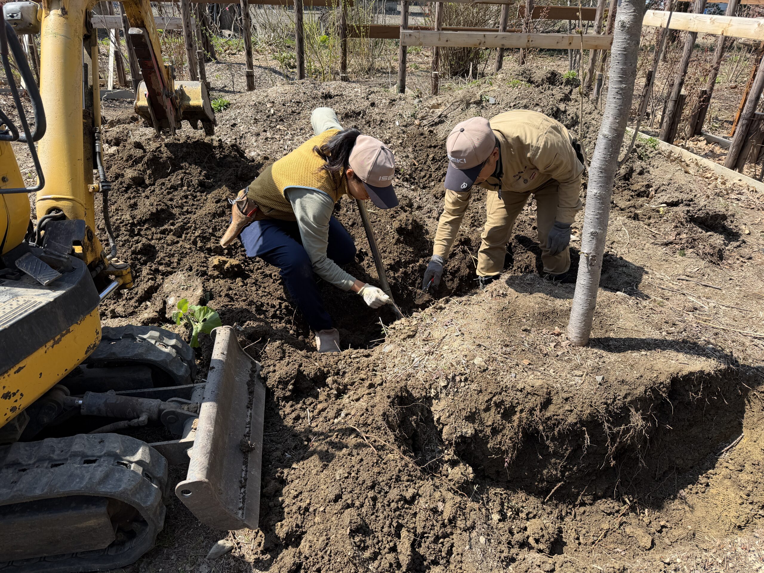E山さん、S野さんと3人で植え込みです。