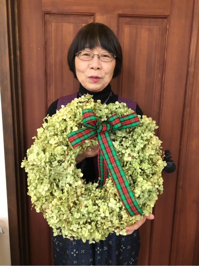 この教室はノーザンのガーデナーが秋のうちにアナベルを収穫して干して置いたものを使います。