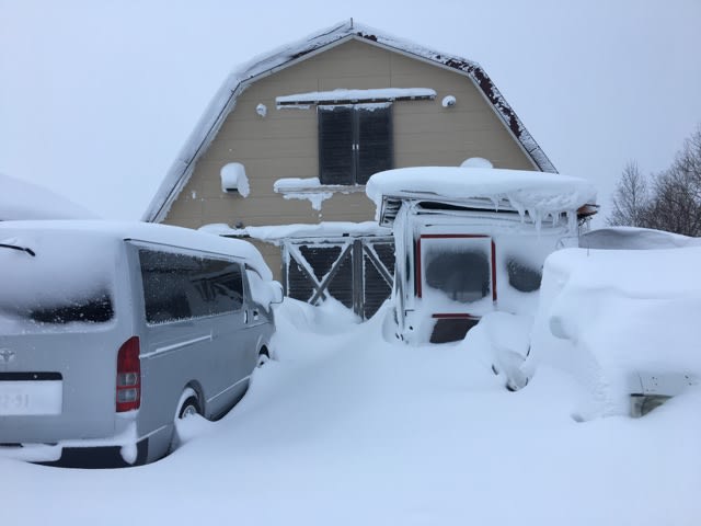 今は男子スタッフ一人体制ですが、きのうは遠方スタッフのため出社できず、二日分の雪がたまっていました。