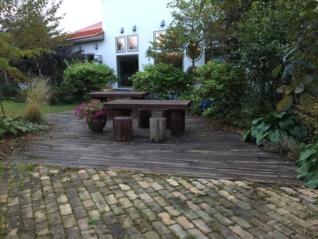 レンガと作った当時は新品の枕木。