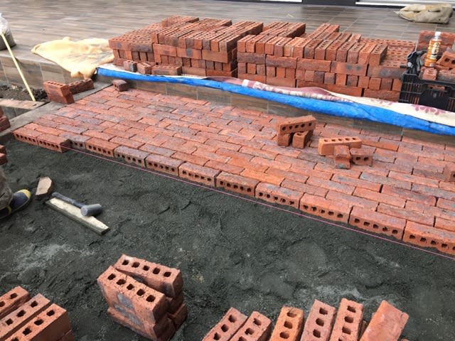 お昼の時間がもったいないので、一人しかできないレンガ作業をテコで入ったオギとリレー。