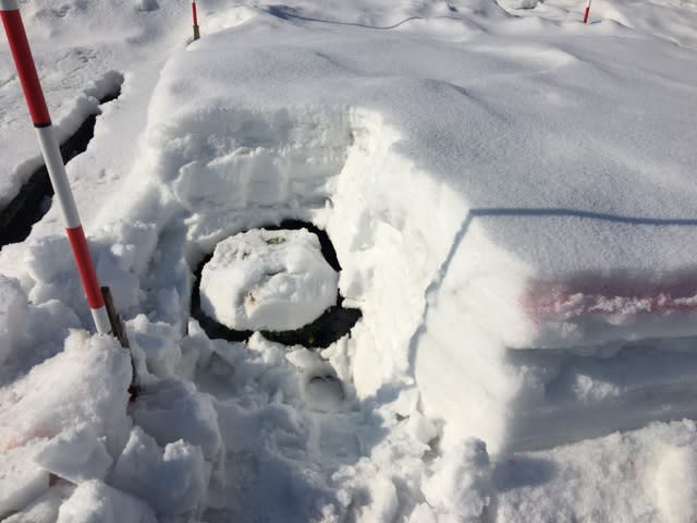このように地温があがり、下から溶けて。周囲は空洞に。