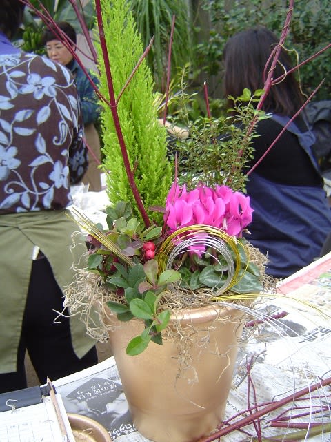 昨日は百合が原の教室でお正月の寄せ植えをしました。