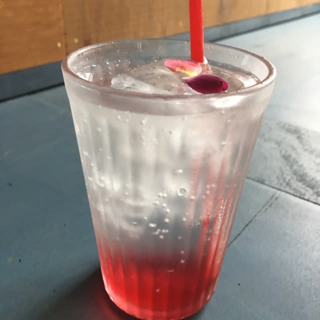 一番香り高いバラを選びシロップを作り炭酸で割りました。