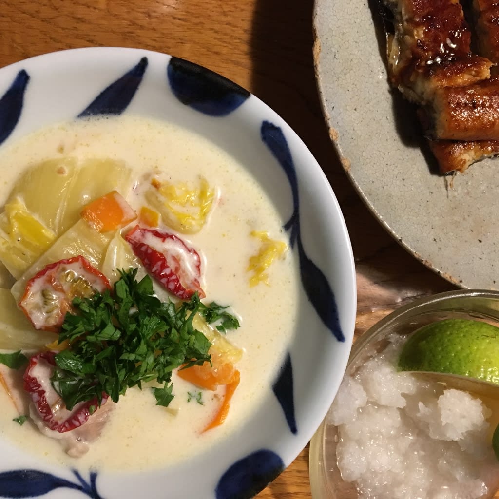 オレンジ白菜にこれまたしづかちゃんのドライトマトを一緒に煮込んでみました。